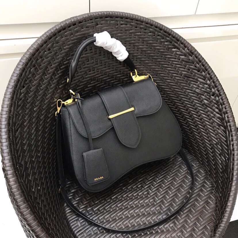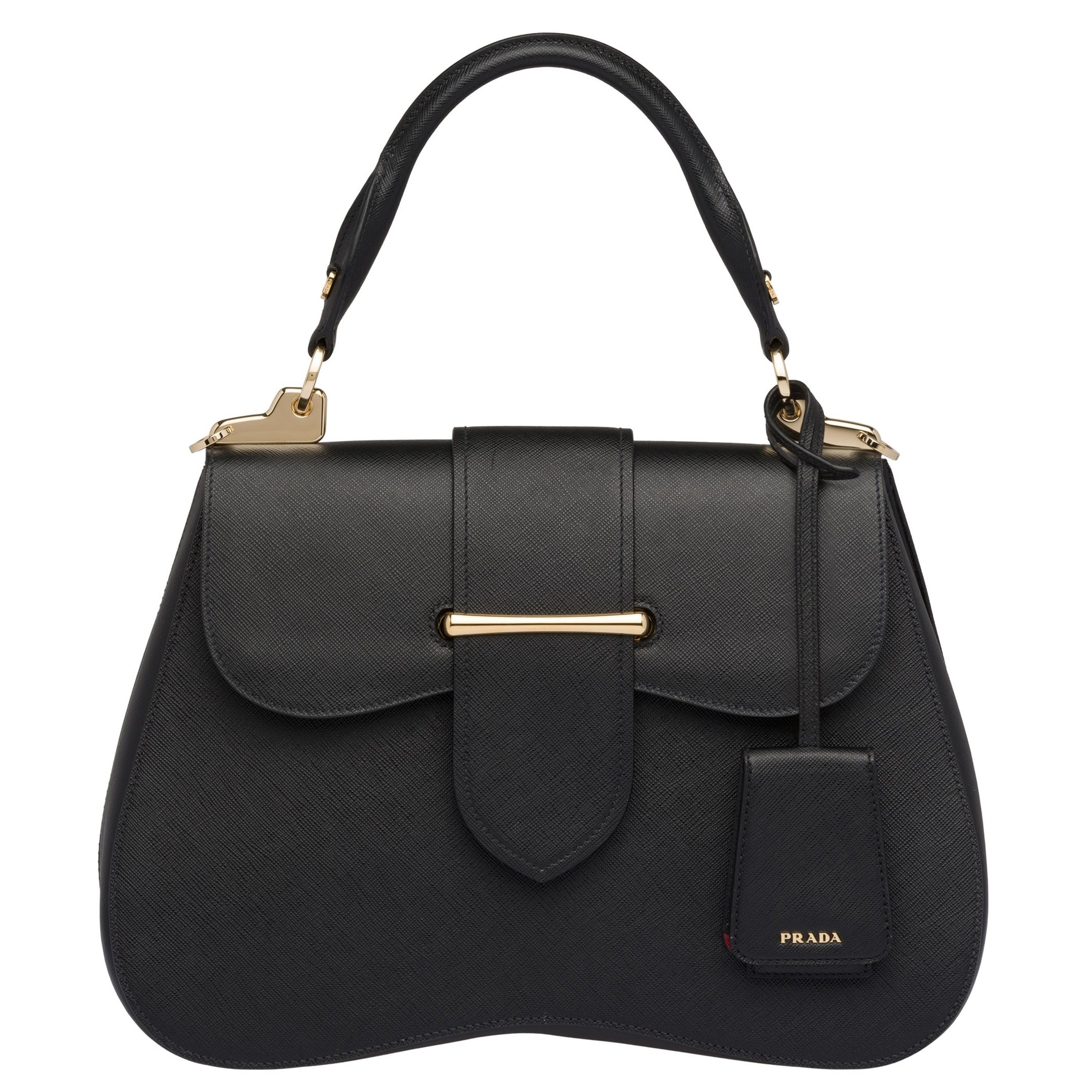 If the Cahier Box Bag is the vintage version, then the Prada Sidonie Bag is the exact opposite 每 it*s modern, smooth and elegant. The sleek, sinuous lines of the Prada Sidonie bag are renewed in the large Saffiano version – with metal hardware and a refined leather name tag – that preserves the distinctive design of the flap with strap.