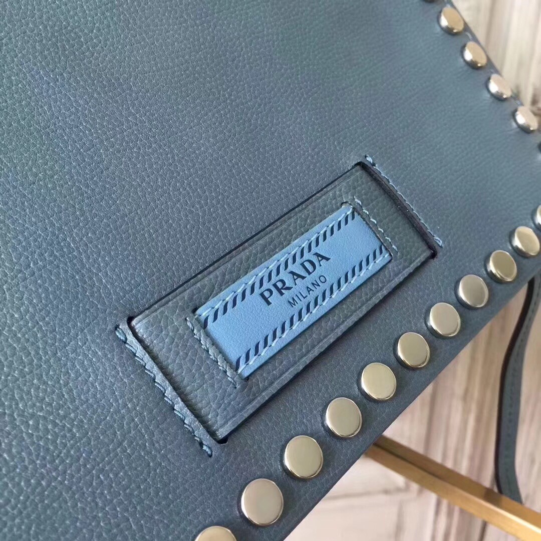 Specialist in leather goods since 1913, Prada has an incredible capacity for renewal, as the Prada Etiquette studded shoulder bag proves. With its supple leather and refined studs, this shoulder bag embodies a modern, relaxed elegance. Prada embellishes this bag with its historic logo on a new tag. The name of the brand is also inscribed in metal letters on the iconic leather luggage tag.