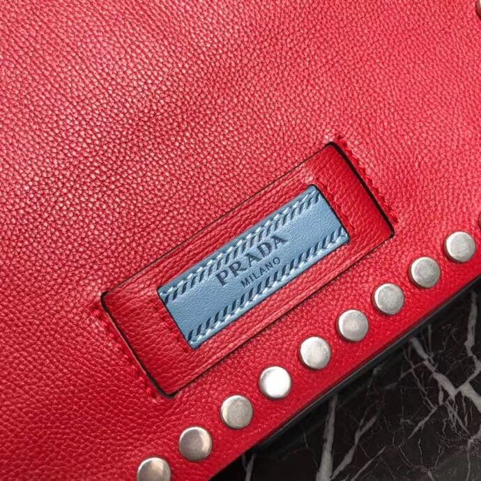 Specialist in leather goods since 1913, Prada has an incredible capacity for renewal, as the Prada Etiquette studded shoulder bag proves. With its supple leather and refined studs, this shoulder bag embodies a modern, relaxed elegance. Prada embellishes this bag with its historic logo on a new tag. The name of the brand is also inscribed in metal letters on the iconic leather luggage tag.