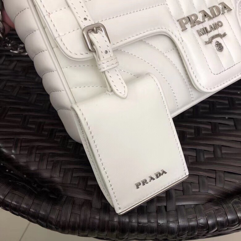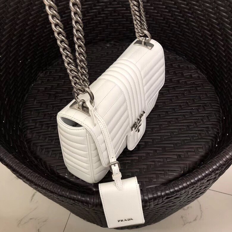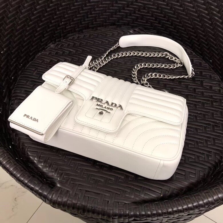 Quilted into vertical and horizontal panels, Prada’s ‘Diagramme’ bag is punctuated with a silver logo and matching chain strap. It’s been crafted from smooth leather and opens up to a divided interior, perfectly sized for your on-the-go essentials. The rich ivory hue is a timeless choice and will work so well with Fall ’19’s neutral palette.