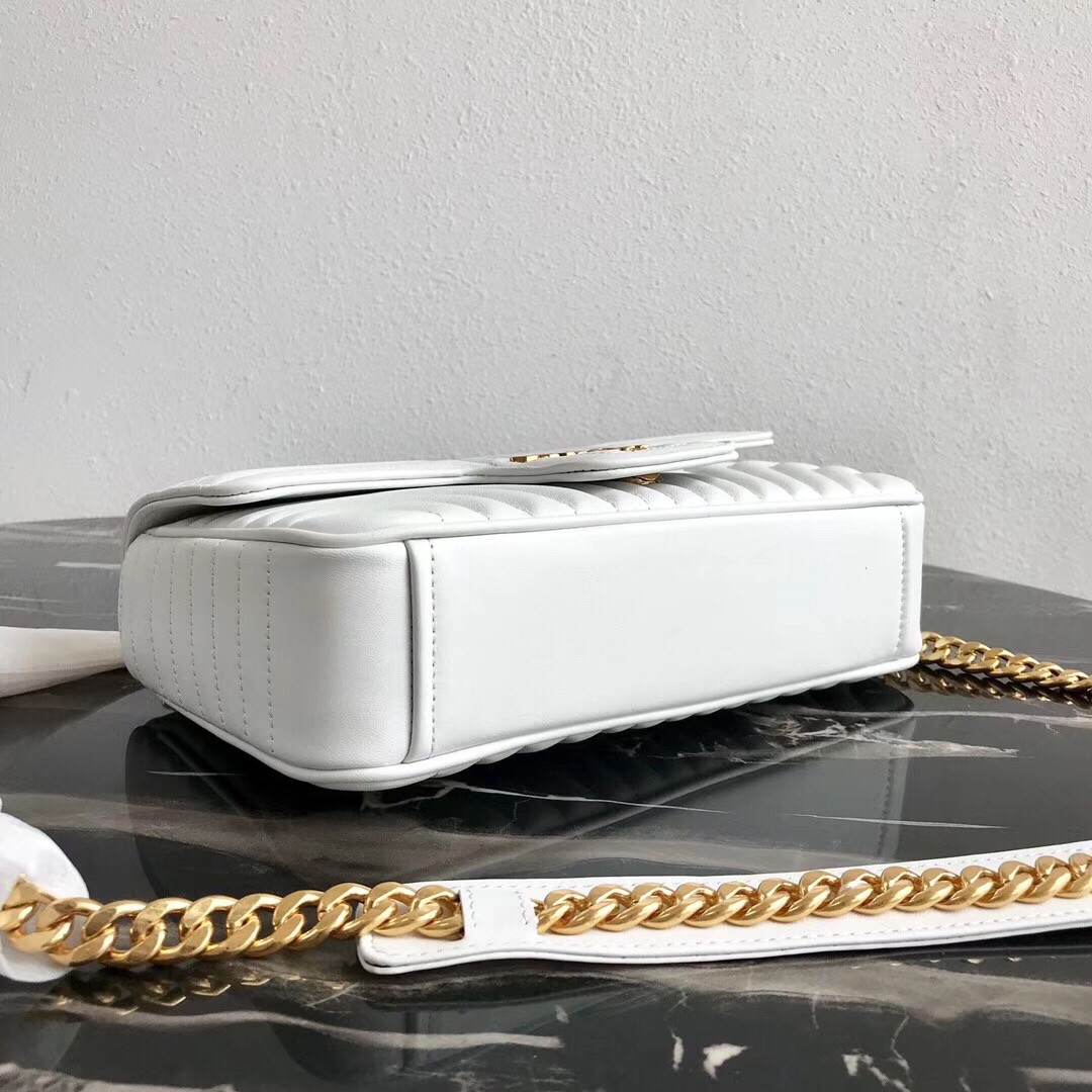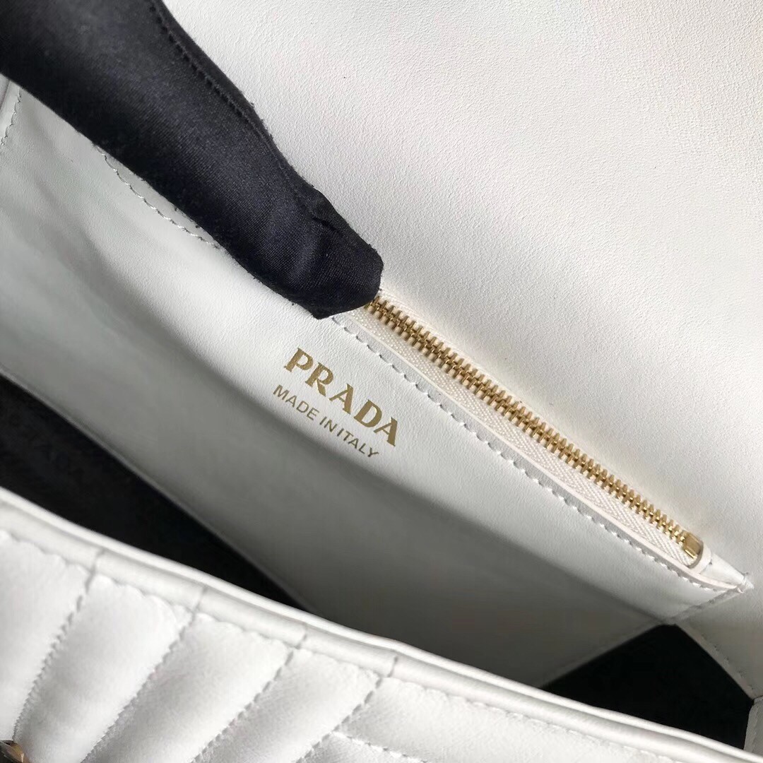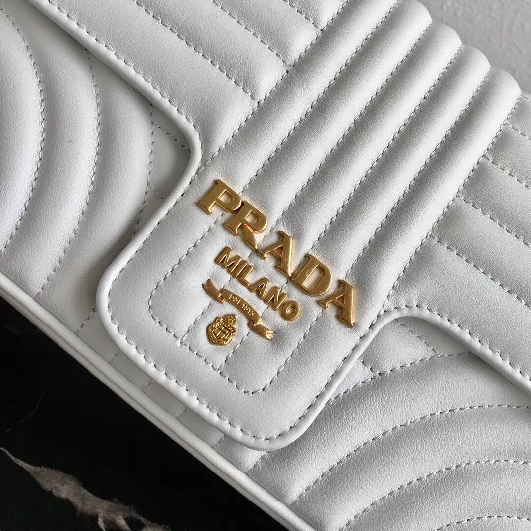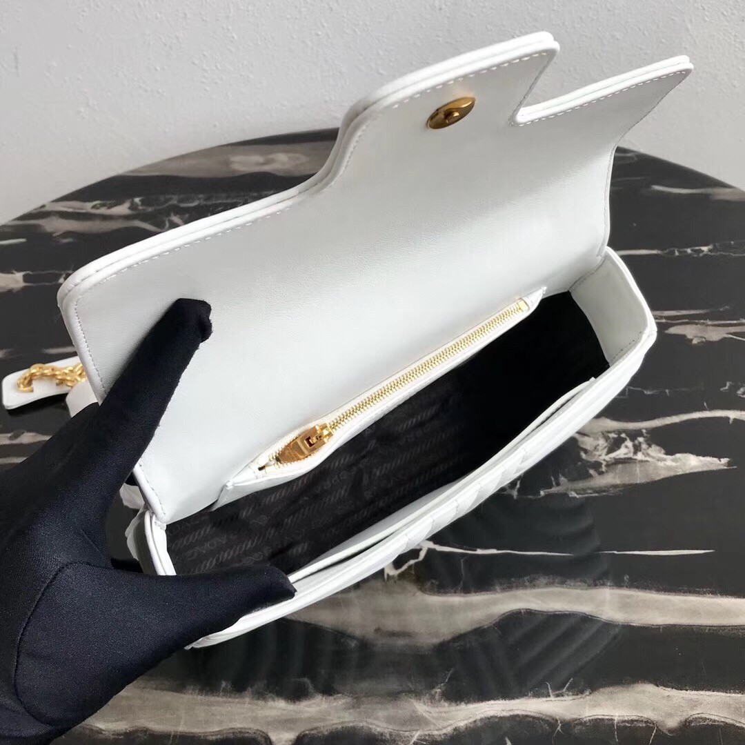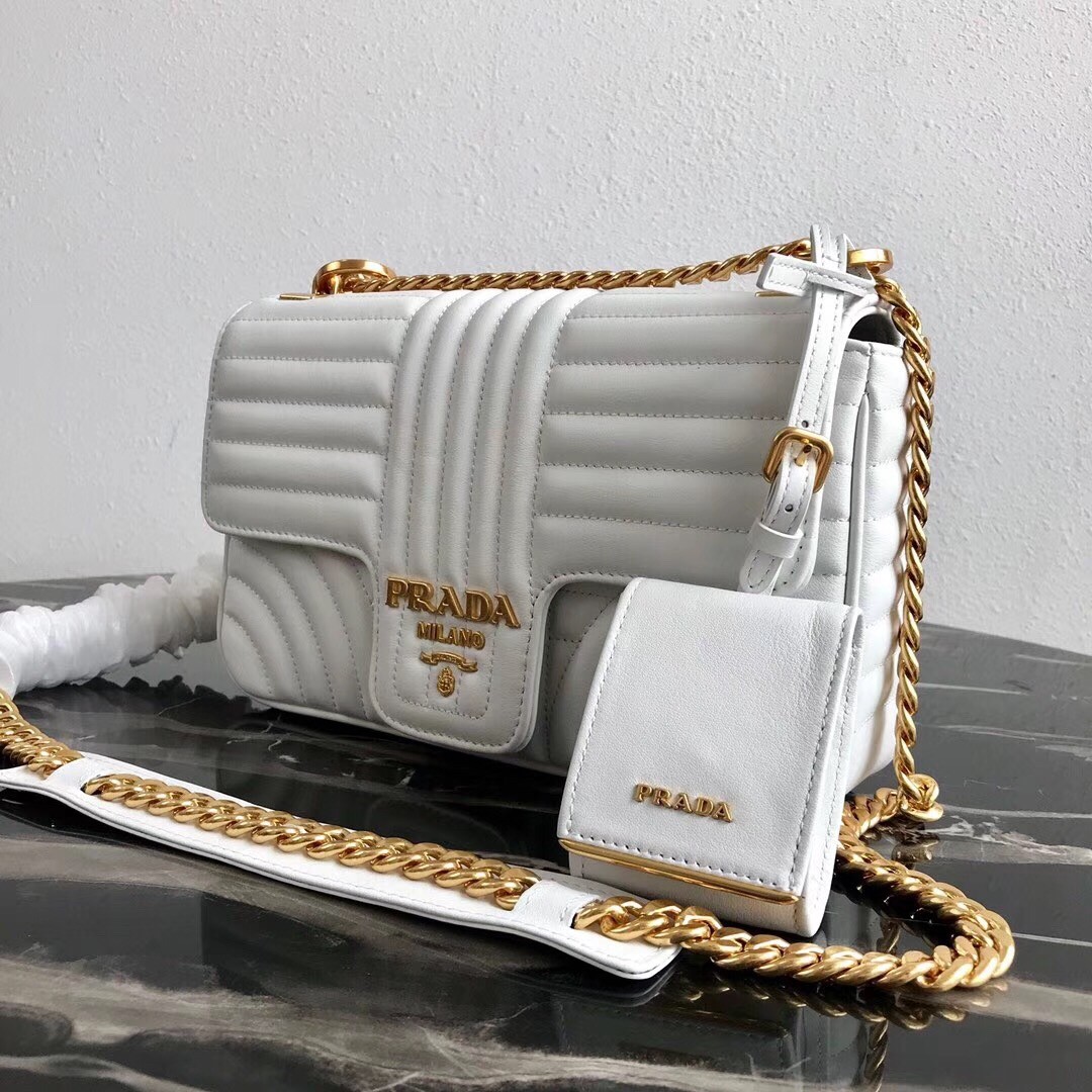 Quilted into vertical and horizontal panels, Prada’s ‘Diagramme’ bag is punctuated with a silver logo and matching chain strap. It’s been crafted from smooth leather and opens up to a divided interior, perfectly sized for your on-the-go essentials. The rich white hue is a timeless choice and will work so well with Fall ’19’s neutral palette.