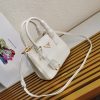 Production of the Prada Galleria bag, composed of 83 pieces, is an authentic fusion between industrial precision and the refined accuracy of craftsmanship that can only be performed by hand. The design is clean and elegant yet innately pragmatic, an aesthetic language blending form and function that combines history and modernity. Originating the definition of “timeless”, the Galleria bag has become a hallmark of Prada’s identity in the twenty-first century. The accessory, presented in the mini version, is made of iconic Saffiano leather that was patented by the founder of the brand and features a crosshatch texture and waxed finish.