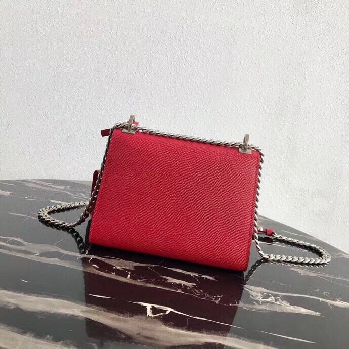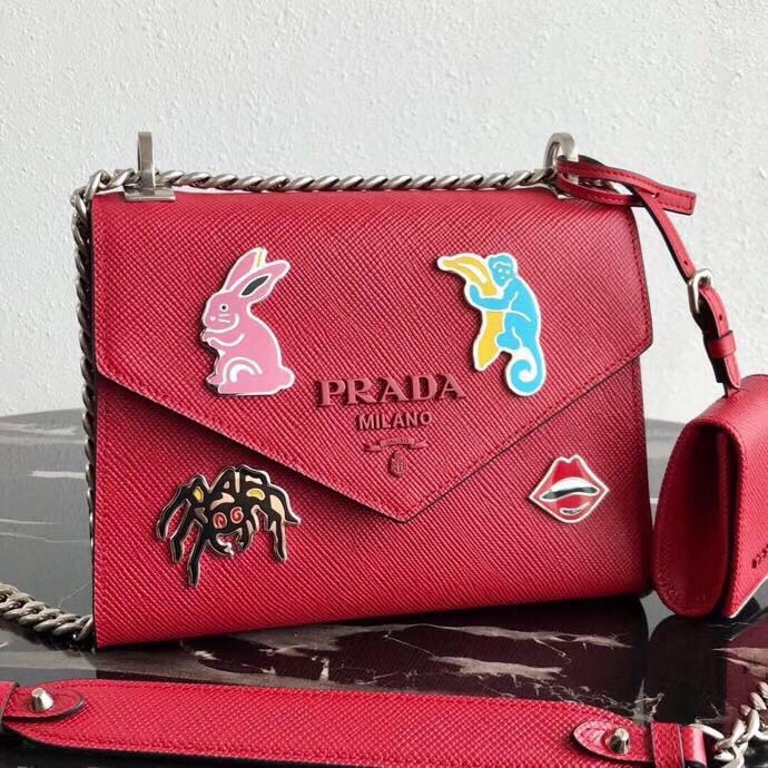 The Monochrome Flap Bag is just like the Chanel Squared Mini Flap Bag. It*s crafted in a boxy shape mixed with trapezoid. The Flap is built in envelope shape, which is stunning because of the refreshing Prada logo in the center. The sleek aesthetic of the Monochrome bag expresses ironic verve thanks to the enameled metal appliqu谷s. It*s made from saffiano leather, which is patented by Prada. This leather is incredible strong, durable and scratch-free.