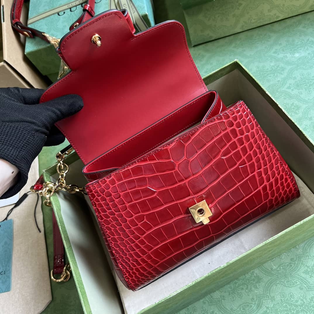 This top handle bag is more than just a fashion statement; it’s a versatile accessory that fits seamlessly into any wardrobe. Whether you’re heading to a business meeting. a casual brunch. or a glamorous evening event. the Gucci Top Handle Bag is the perfect companion. Its spacious interior provides ample room for your essentials. while the multiple pockets keep your belongings organized and easily accessible.