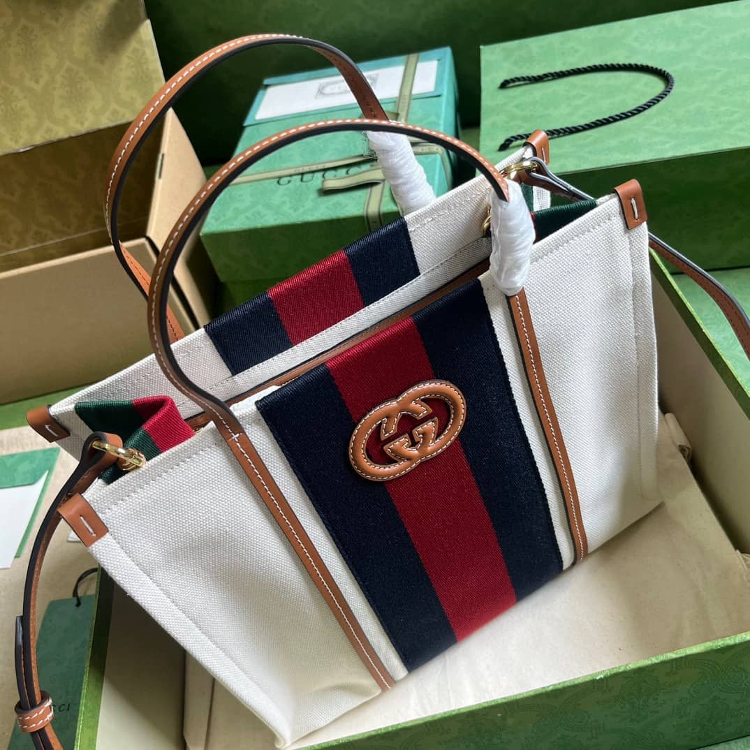 The Gucci Tote Bag is crafted with the utmost attention to detail. using only the finest materials. Whether made from the signature GG Supreme canvas. luxurious leather. or a combination of both. each tote bag is a masterpiece. The GG Supreme canvas. an environmentally friendly material. is notable for its durability and distinctive pattern. while the leather variants offer a sleek. polished look that exudes sophistication. The meticulous craftsmanship ensures that every stitch. seam. and finish reflects Gucci’s commitment to excellence.