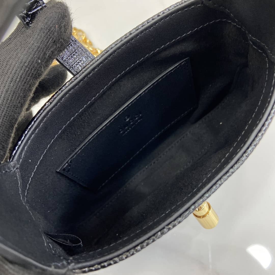 The Gucci Mini Bag features a timeless design that effortlessly blends classic elegance with contemporary flair. Made from the finest materials. this bag showcases the impeccable craftsmanship that Gucci is renowned for. The bag’s sleek silhouette is accentuated by its high-quality leather construction. ensuring durability and a luxurious feel. The iconic Gucci logo is subtly embossed on the front. adding a touch of sophistication without being overly ostentatious.
