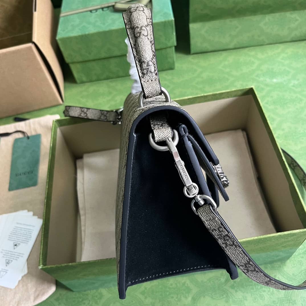 The Gucci Top Handle Bag stands out as a quintessential piece that embodies the brand’s dedication to elegance and style.Beyond its stunning appearance. the Gucci Top Handle Bag is designed with functionality in mind. The spacious interior provides ample room for your essentials. while the thoughtfully placed pockets help keep your belongings organized. Whether you’re carrying your phone. wallet. makeup. or other necessities. everything has its place. The secure closure ensures your items are safe. while the easy access makes it convenient to grab what you need on the go.