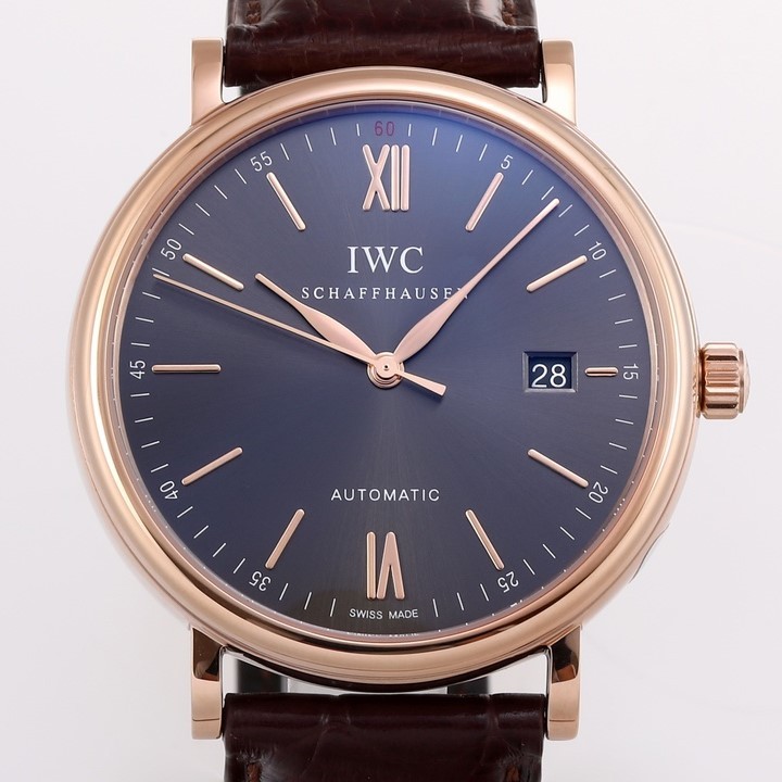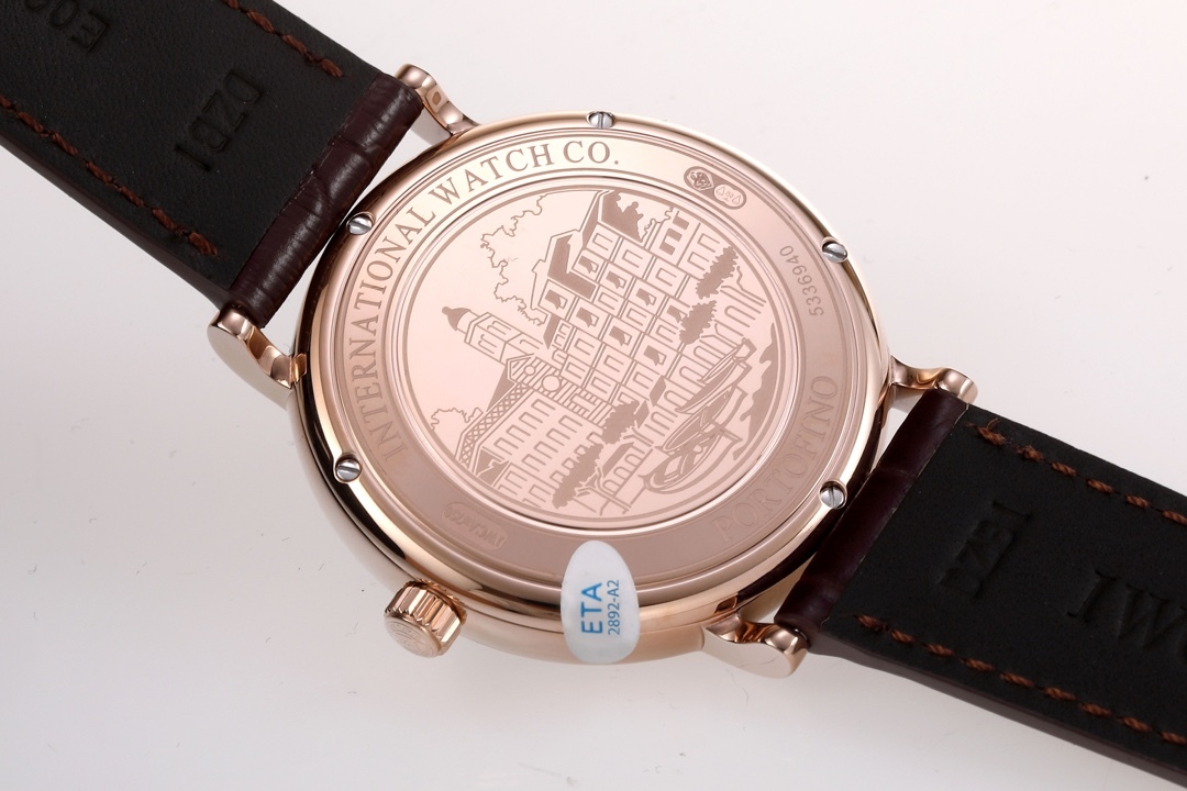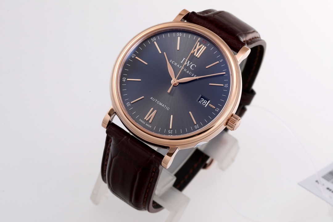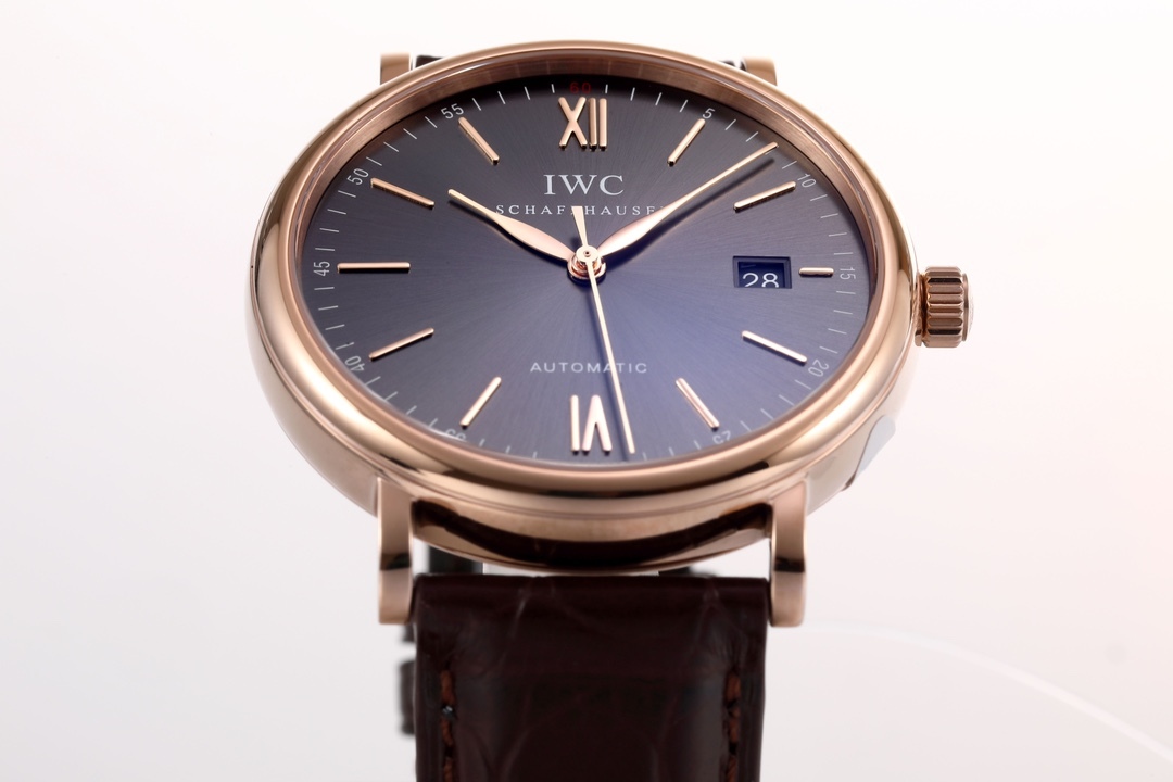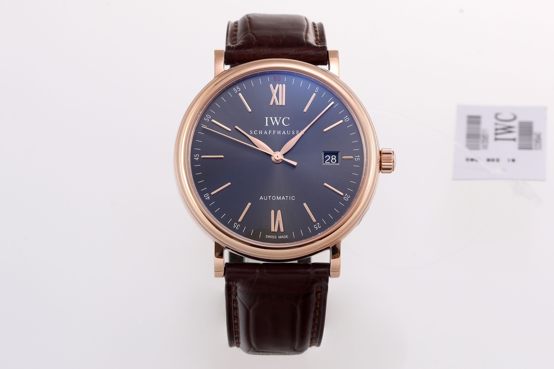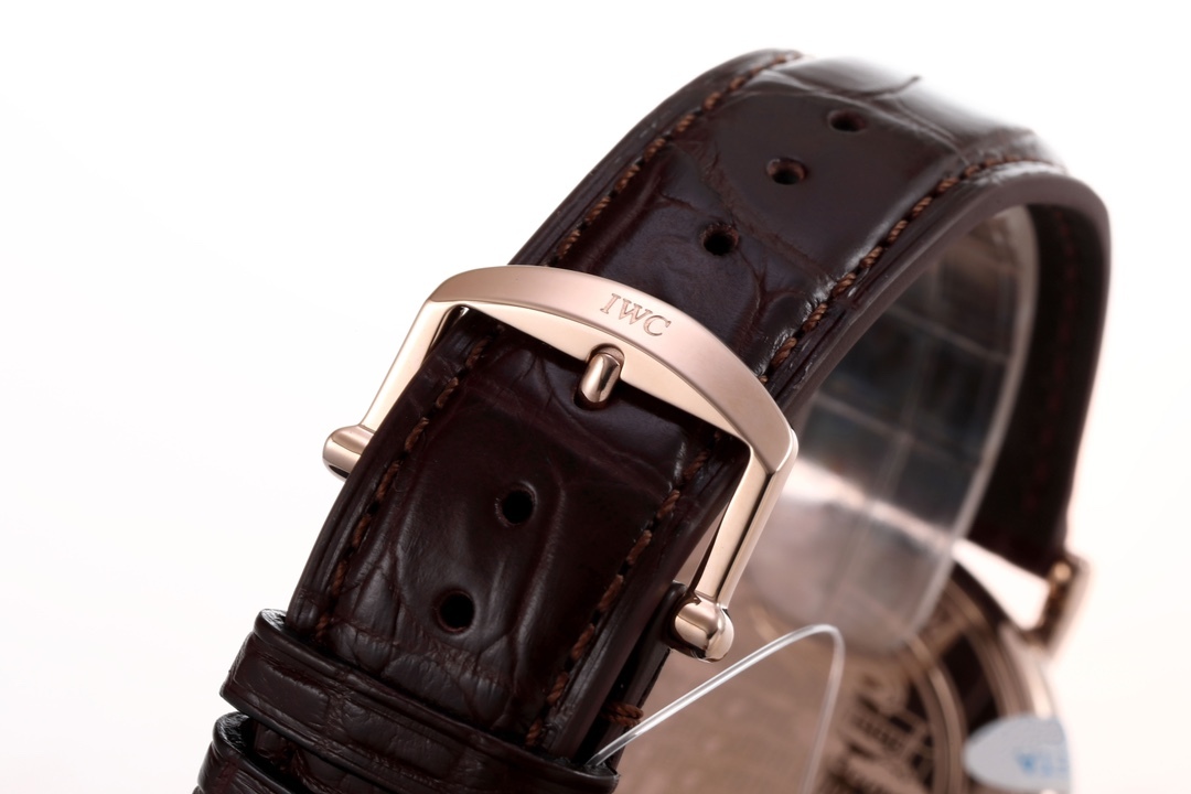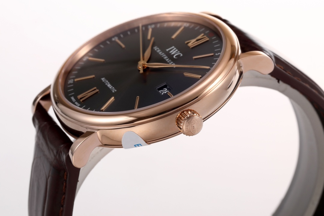 REPLICA IWC PORTOFINO AUTOMATIC LEATHER STRAP BLACK DIAL ROSE GOLD CASE