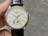 Rolex Cellini Dual Time 50529 Silver Sunburst Dial Black Leather Strap 39mm Mens Replica Watch,39mm white gold case, domed and fluted double bezel, screw down winding crown, domed sapphire crystal, Silver Sunburst Dial with white gold hour markers and hands, Sub-dial at 6 o’clock displaying second time zone and day-night indicator, Shiny black alligator leather strap with white gold buckle.