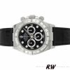 Rolex Cosmograph Daytona 116589 Black Diamond Dial 40MM,40MM White Gold Bezel Set With Diamonds,Scratch Resistant Sapphire crystal.Black dial With Diamond hour markers,30-minute counter at 3 o’clock, and 12-hour counter at 9 o’clock,Black Leather Strap,Screw Down Crown with Triplock Triple Waterproofness System.