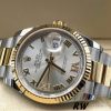 Rolex Datejust 126233 Silver Roman Numeral Dial 36MM Unisex Replica Watch, 36mm yellow Rolesor case with Oystersteel monobloc middle case, screw-down steel back, screw-down yellow crown, yellow fluted bezel, silver dial, Roman numerals with diamond set 6 and 9,Date displayed under cyclops lens in window at 3 o’clock with instantaneous date and rapid setting.Yellow Rolesor Oyster bracelet with flat three-piece links, folding Oysterclasp buckle with Easylink comfort extension link.