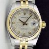 Rolex Datejust 179173 Silver Jubilee Diamond Dial Fluted Bezel 26MM Lady Replica Watch,Stainless steel oyster case 26.0 mm in diameter.Yellow gold fluted bezel. Scratch resistant sapphire crystal with cyclops magnifier.Silver Jubilee Dial with Diamond Hour Markers.Date calendar at 3 o’clock aperture. Stainless steel yellow gold jubilee bracelet with a hidden clasp.