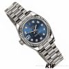 Rolex Datejust 179179 Blue Dial Fluted Bezel 26MM Lady Replica Watch,26mm white gold oyster case in diameter. White gold fluted bezel. Scratch resistant sapphire crystal with cyclops magnifier.Blue dial with diamond hour markers. Date calendar at 3 o’clock aperture. White gold president bracelet with hidden clasp.