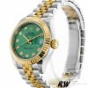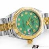 Rolex Datejust 279173 Green Diamond Dial Fluted Bezel 28mm Lady Replica Watch, Features a 28MM Yellow Gold Case, Polished Solid Yellow Gold Fluted Bezel. Scratch-resistant sapphire crystal with Cyclops magnifying glass.Green dial with Diamond hour markers.Date calendar at 3 o’clock aperture. Stainless steel jubilee bracelet with yellow gold center links.