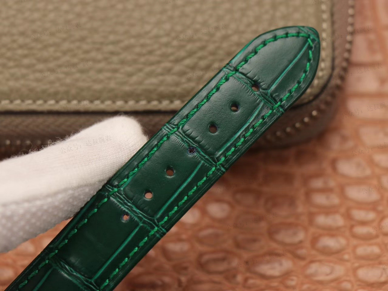 | Bracelet Material: | Green Alligator Leather Strap |