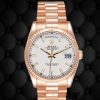 Rolex Day-Date 118235 White Dial 36mm Unisex Replica Watch has a Rose Gold 36 mm Round Case with Screw Down Crown and a Rose Gold Fluted Bezel. white dial With Manufacturer Serial Numbers. The day at the 12 o’clock and the date at the 3 o’clock.Rose Gold President Bracelet with the heavy band Folding Crownclasp.
