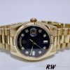 Rolex Day-Date 118238 Blue Diamond Dial Unisex Replica Watch has a Yellow Gold 36 mm Round Case with Screw Down Crown and a Yellow Gold Fluted Bezel. Blue diamond-set dial,baguette diamond quarter-hour indexes, outer Roman numerals on the minute/seconds track, apertures for the days of the week and the date in English. Yellow gold baton hands.The reliable Yellow Gold Oyster Bracelet will look great on your wrist.