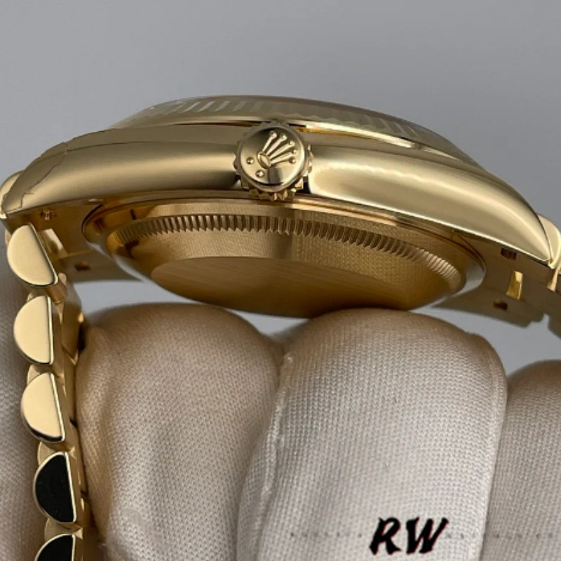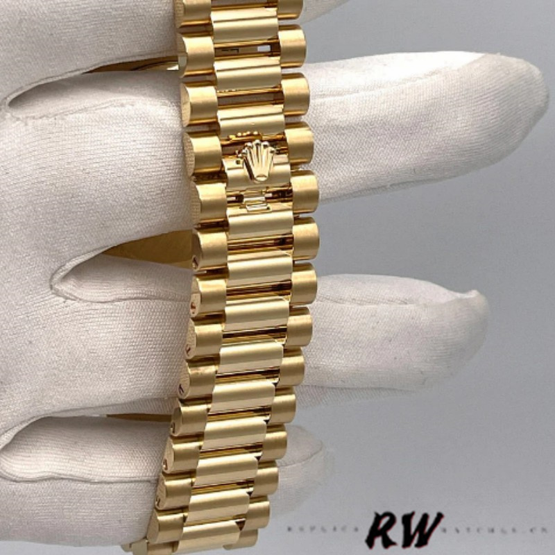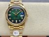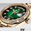Rolex Day-Date 128238 Fluted Bezel Green Diamond Dial 36MM ReUnisex plica Watch ,36mm yellow gold case, screw-down back, screw-down crown with twinlock double waterproofness system, fluted bezel,Green ombre dial with diamond hour markers.Date window displayed under cyclops lens at 3 o’clock. Day window displayed at 12 o’clock.Instantaneous day and date setting.Yellow gold President bracelet with semi-circular three-piece links, concealed folding Crownclasp buckle.