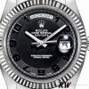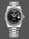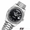 Rolex Day-Date 218239 Concentric Circle Black Dial White Gold 41MM Mens Replica Watch, has a 41mm White gold case that has a solid case back,a screw-down crown, and a fluted white gold bezel.Scratch resistant sapphire crystal with Cyclops magnifier.Concentric Circle Black Dial with Arabic Numerals Hour Markers,Date Window Displayed at 3 O’Clock,Day Window Displayed at 12 O’Clock,White gold three-piece-link Presidential bracelet with a fold-over clasp.
