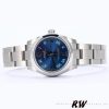 Rolex Oyster Perpetual 177200 Blue Dial Domed Bezel 31mm Lady Replica Watch, 31mm Stainless steel oyster case in diameter. Stainless steel smooth domed bezel. Scratch resistant sapphire crystal. Blue Dial with with Arabic numerals hour markers.Stainless steel oyster bracelet with a fold over clasp.