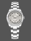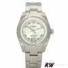 Rolex Oyster Perpetual 177210 Silver Maxi Arabic Dial 31mm Lady Replica Watch has a Stainless Steel 31 mm Round Case with Screw Down Crown and a Engine Turned Bezel Bezel. Silver Dial with Maxi Arabic Numerals,The reliable Stainless Steel Oyster Bracelet will look great on your wrist.