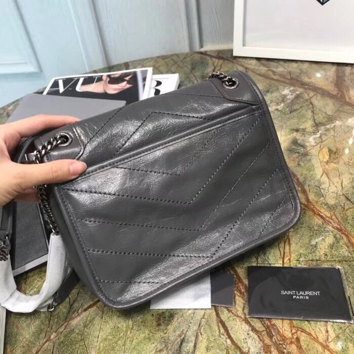 Be the first to review “Saint Laurent Baby Niki Chain Bag In Storm Gray Crinkled Leather”