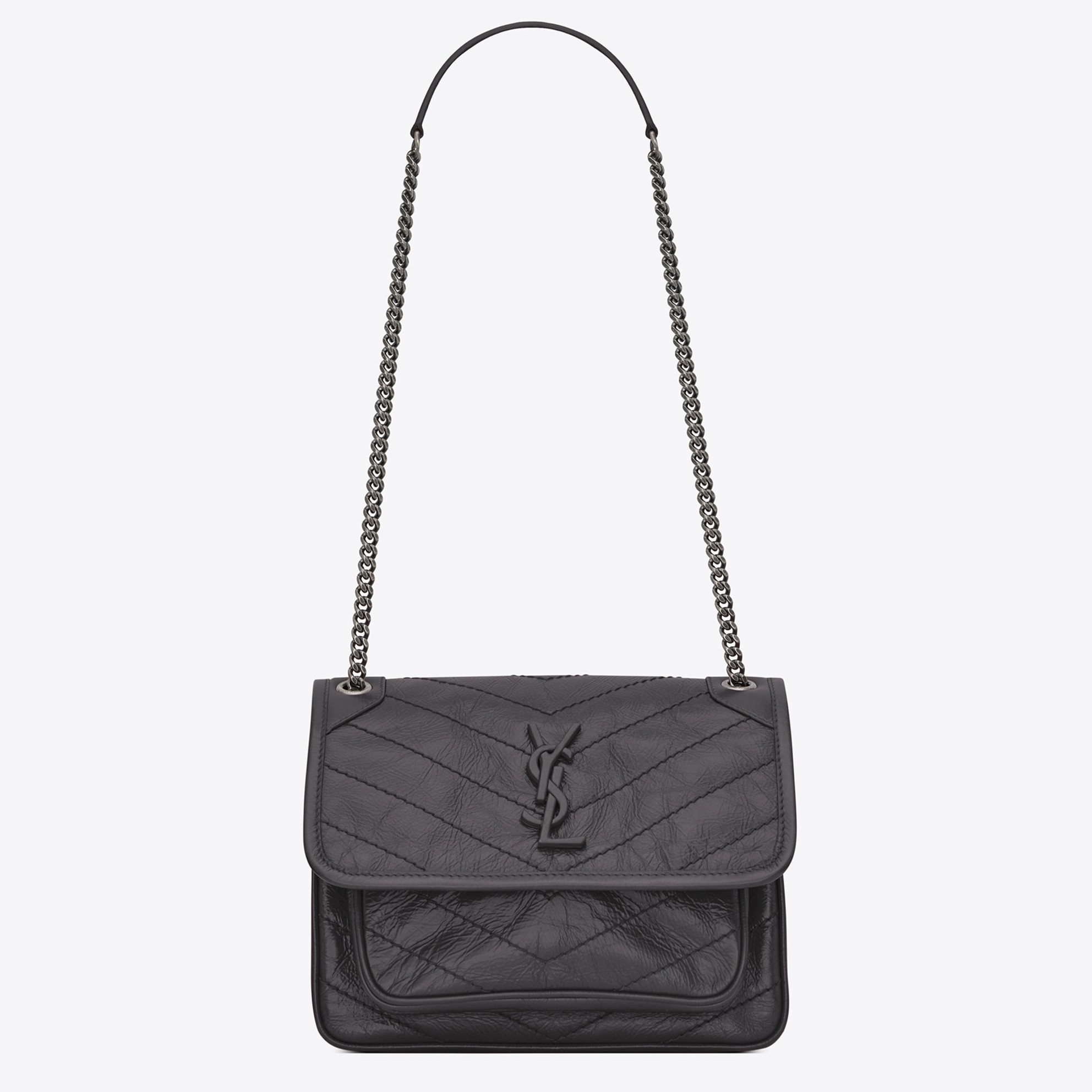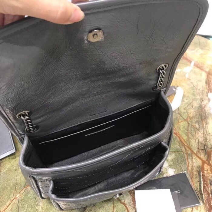 Saint Laurent Baby Niki Chain Bag In Storm Gray Crinkled Leather