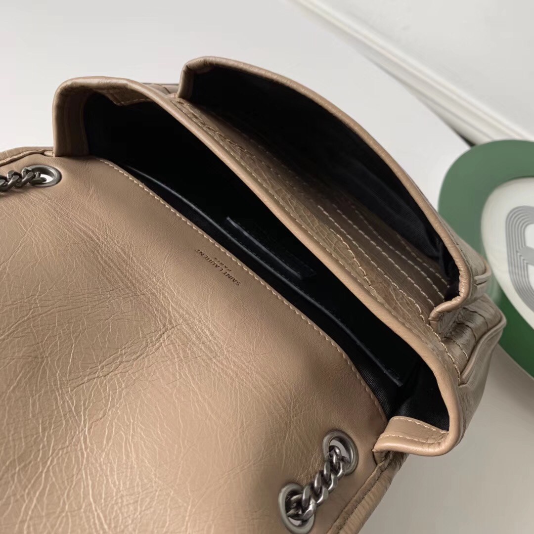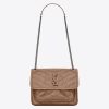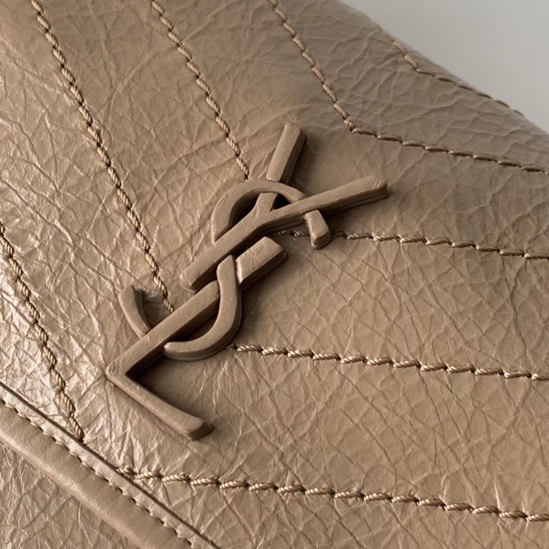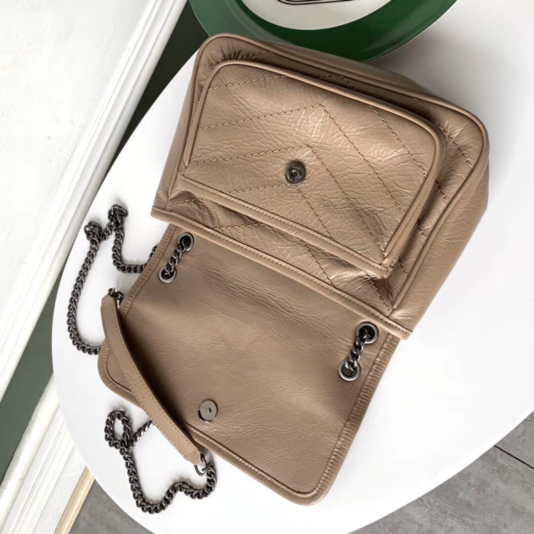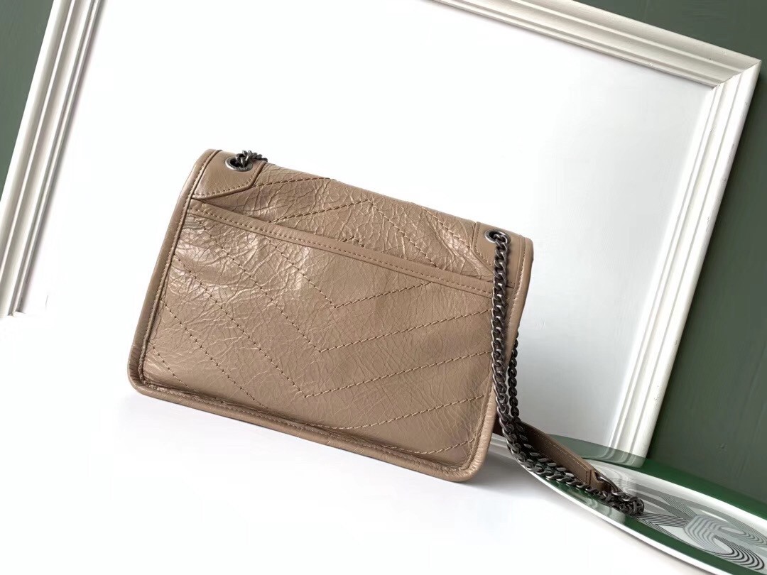 Under the creative helm of Anthony Vaccarello, Saint Laurent’s latest edit works with muted tones and subtle patterns to create pieces that retain the Parisian labels celebrated luxury. Rendered in crinkled leather with a slouchy silhouette, the Niki shoulder bag is finished with the iconic interlocking monogram at the clasp. Suspended from a curb-chain strap, its spacious build boasts multiple interior compartments.