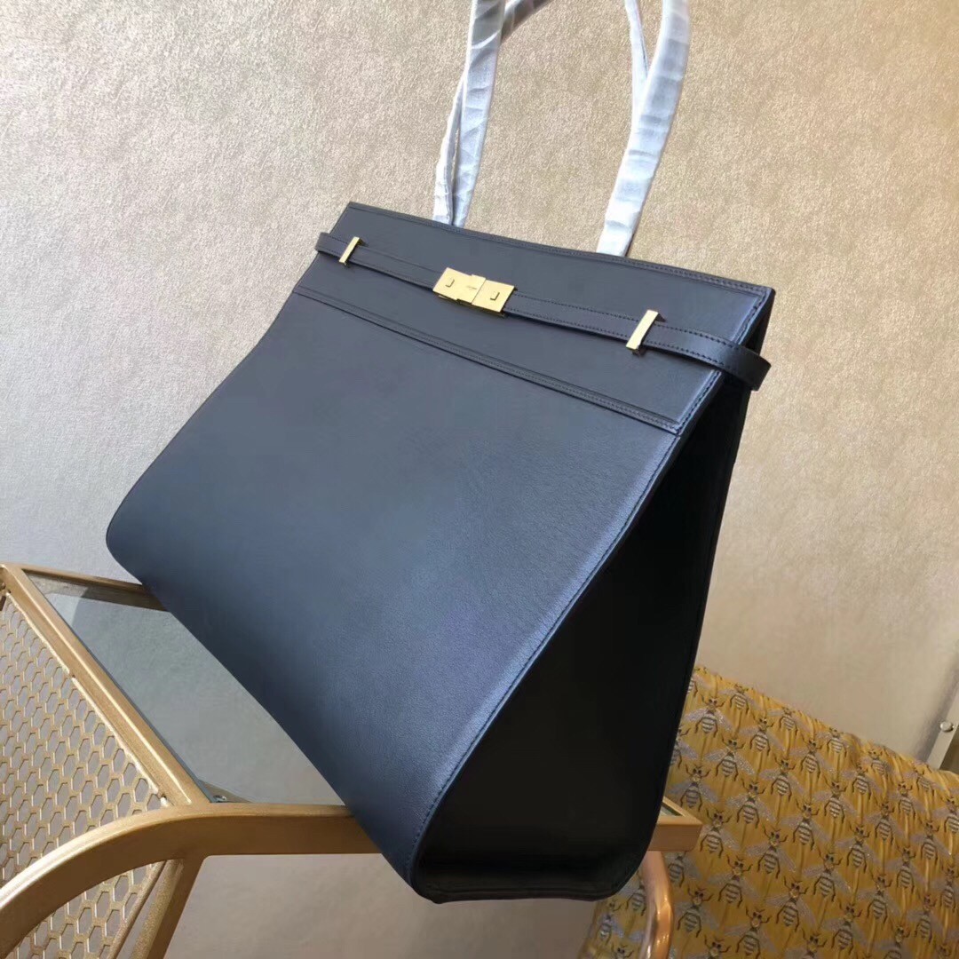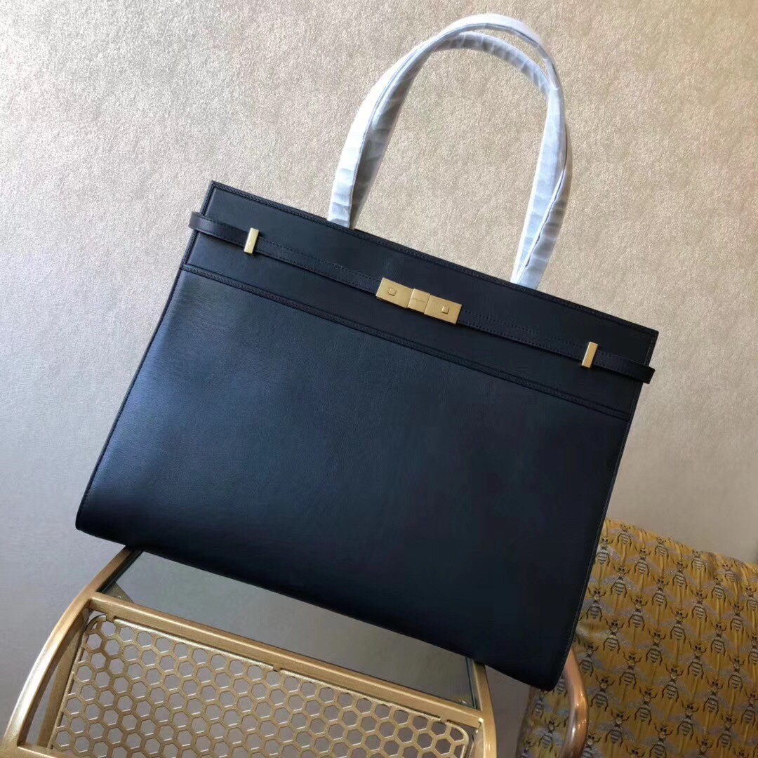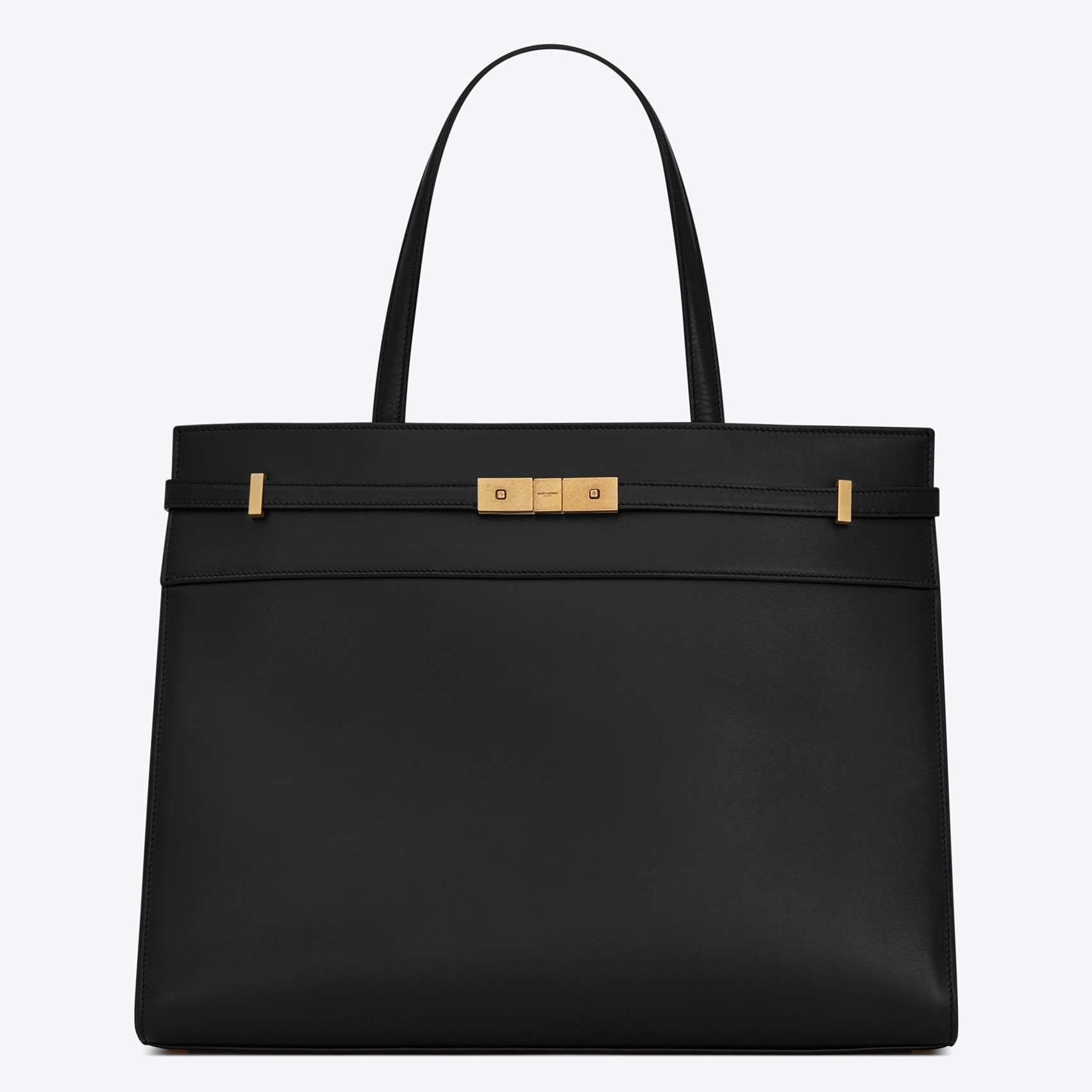Saint Laurent’s ‘Manhattan’ tote is perfect for the days when you’re running from the gym to work and then an event afterwards. It has been made in Italy from smooth black leather and minimally decorated, save for the slender burnished gold buckle strap at the top and the tiny embossed logo. Thanks to the extra long top handles, it’ll fit comfortably on the shoulder over chunky coats and sweaters.