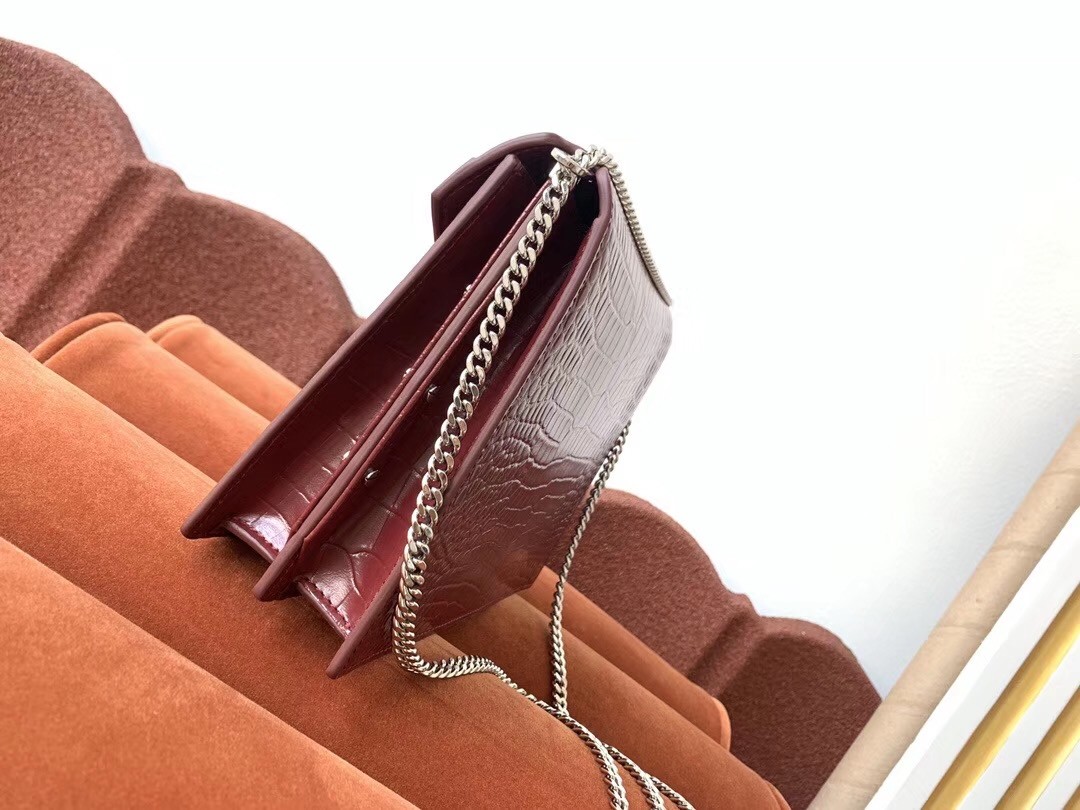 Saint Laurent Cassandra Clasp Bag In Bordeaux Croc-Embossed Leather