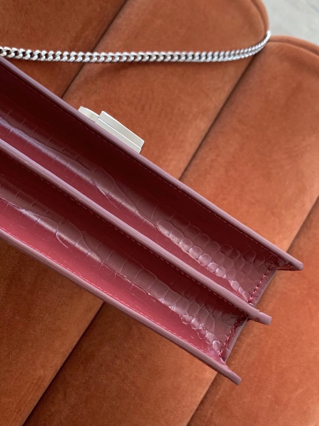 Be the first to review “Saint Laurent Cassandra Clasp Bag In Bordeaux Croc-Embossed Leather”