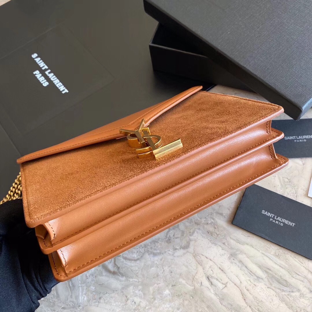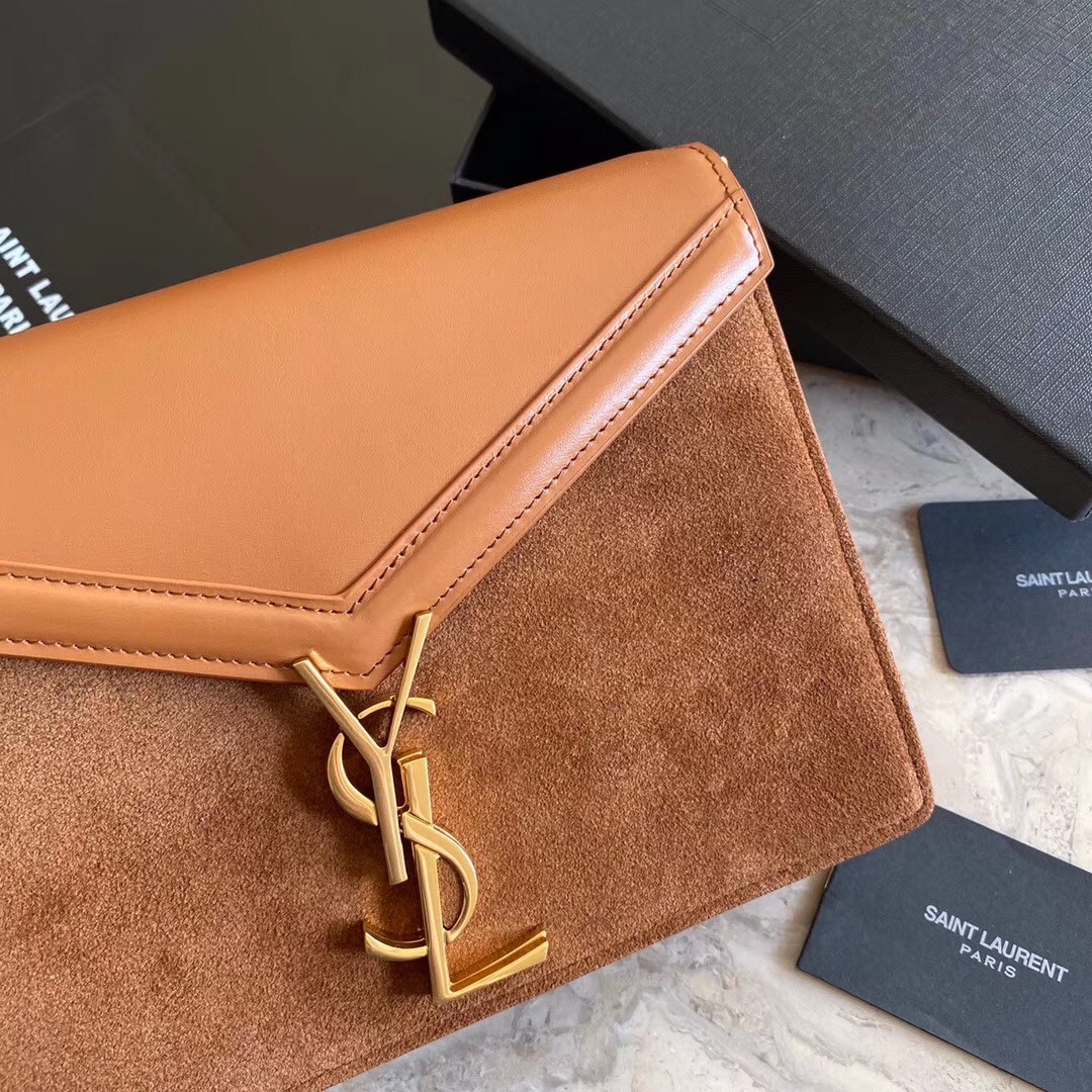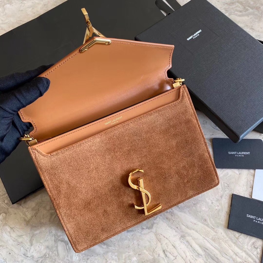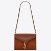 Saint Laurent Cassandra Clasp Bag In Brown Suede