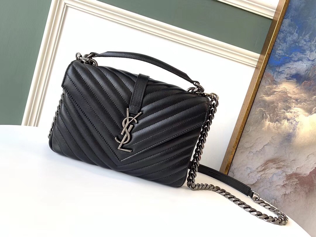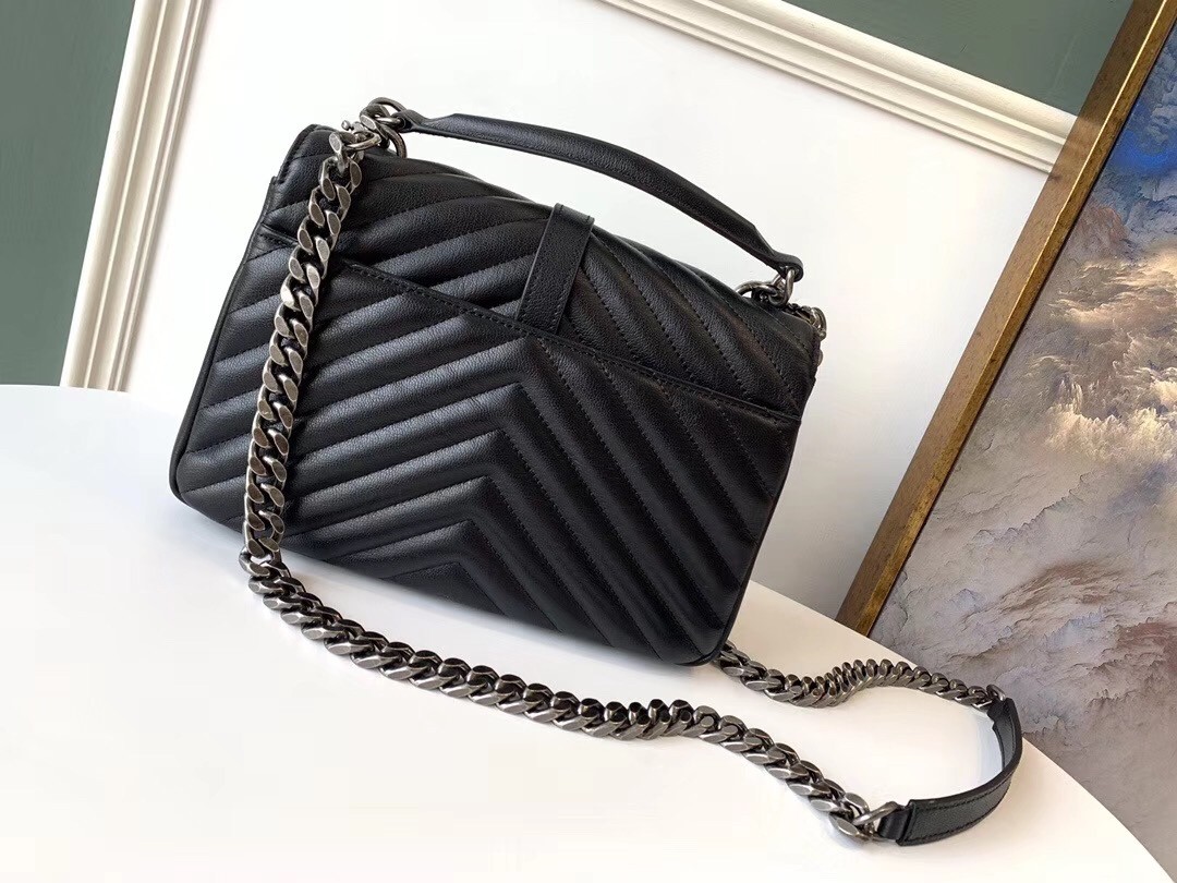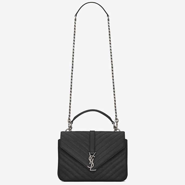 Marrying Parisian elegance with sleek avant-garde design, Saint Laurent’s Coll??ge medium shoulder bag is a classic option for casual affairs and evening soir??es alike. Rendered in cushioned matellas?? leather, the envelope-style flap silhoutte features the iconic ‘YSL’ logo in metal hardware, complementing the chunky chain strap that takes it to ‘investment-piece’ status. Complete with a comparmentalised interior, it will slot effortlessly into your accessories repertoire.