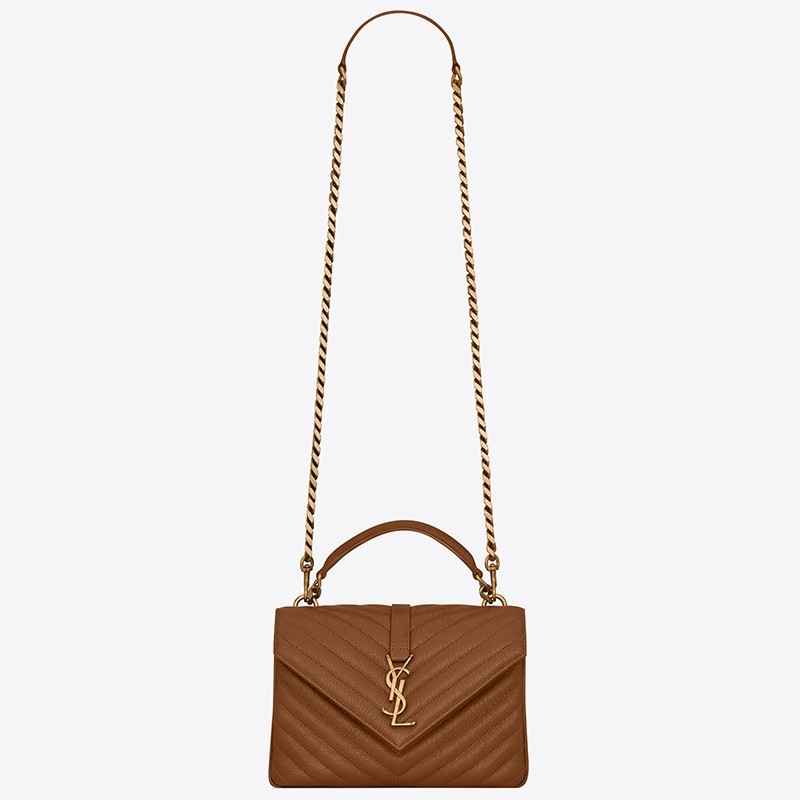 Marrying Parisian elegance with sleek avant-garde design, Saint Laurent’s Coll??ge medium shoulder bag is a classic option for casual affairs and evening soir??es alike. Rendered in cushioned matellas?? leather, the envelope-style flap silhoutte features the iconic ‘YSL’ logo in metal hardware, complementing the chunky chain strap that takes it to ‘investment-piece’ status. Complete with a comparmentalised interior, it will slot effortlessly into your accessories repertoire.