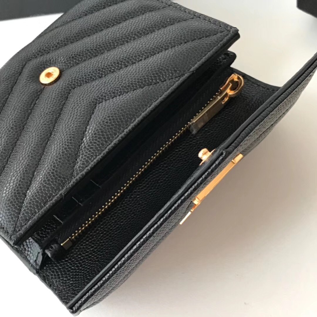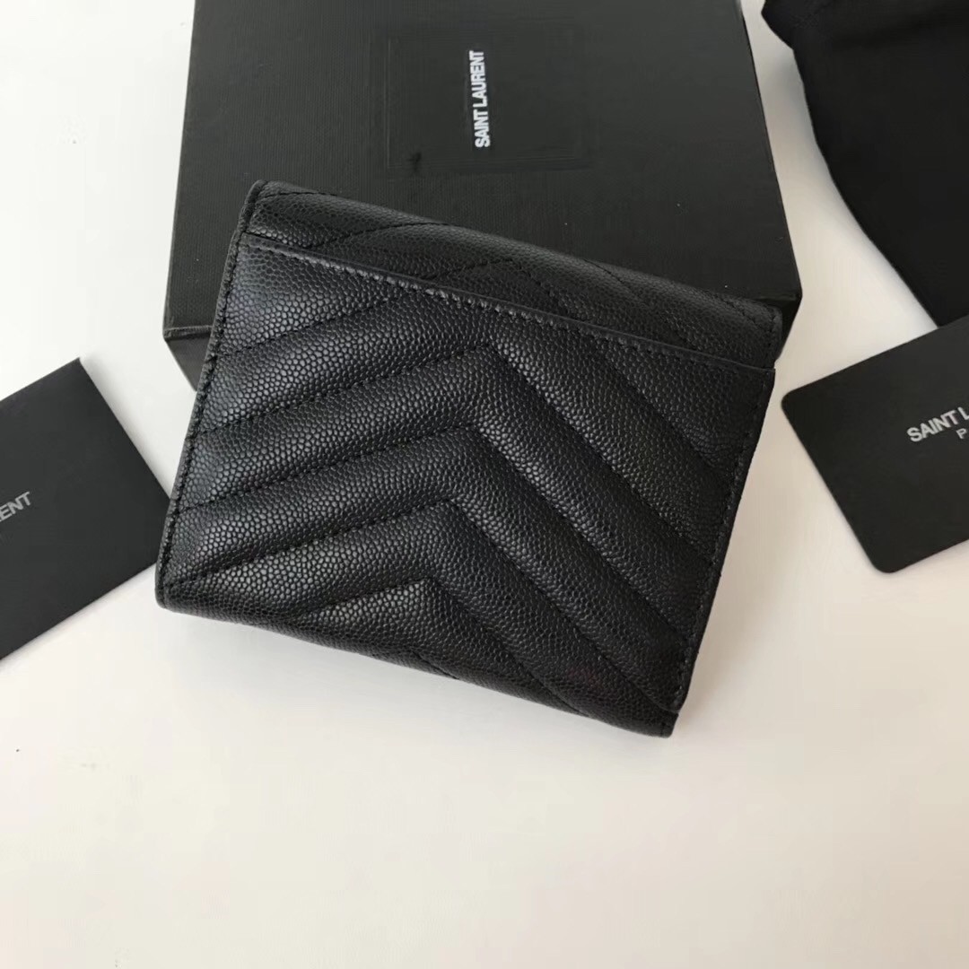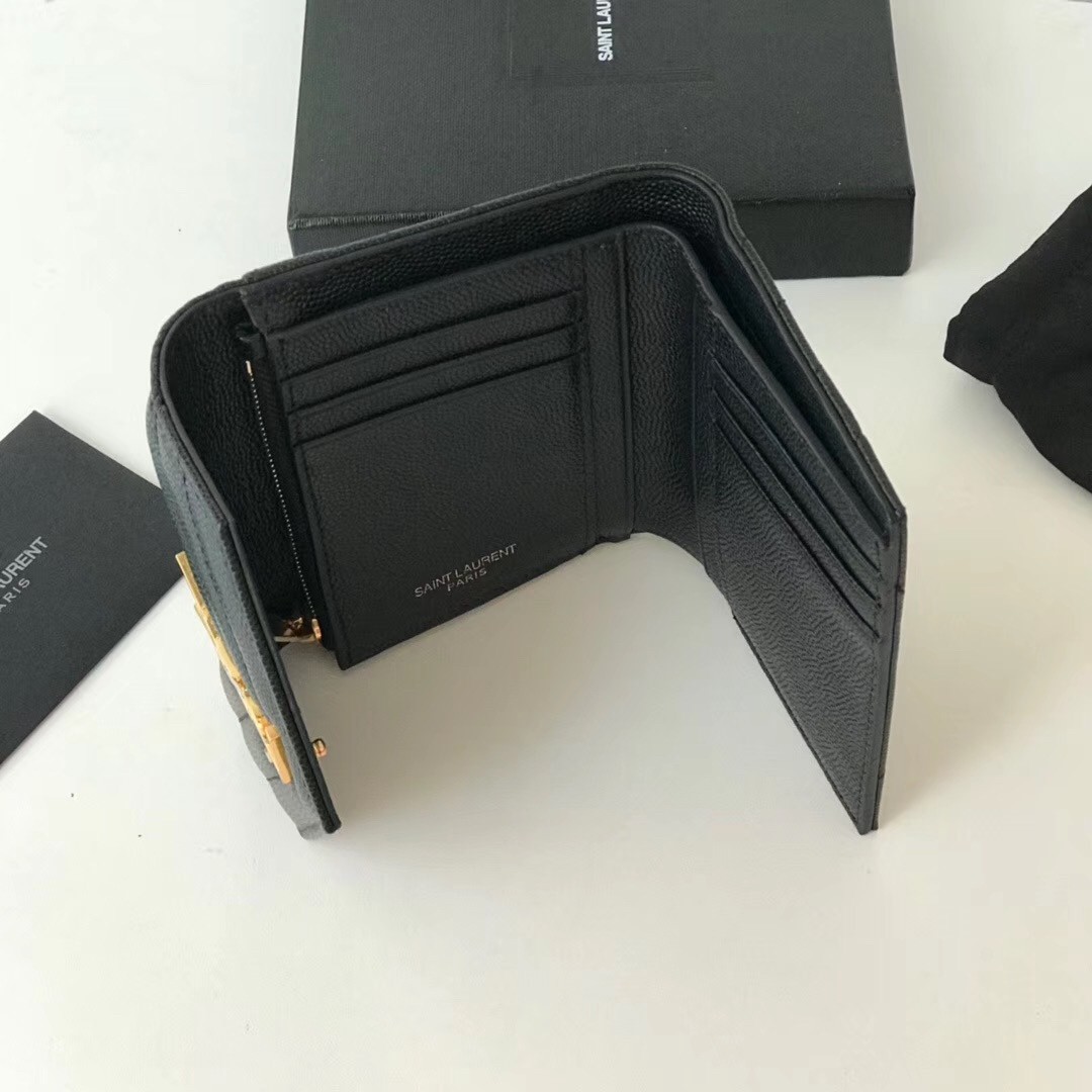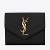 Saint Laurent Compact Tri Fold Wallet In Black Leather