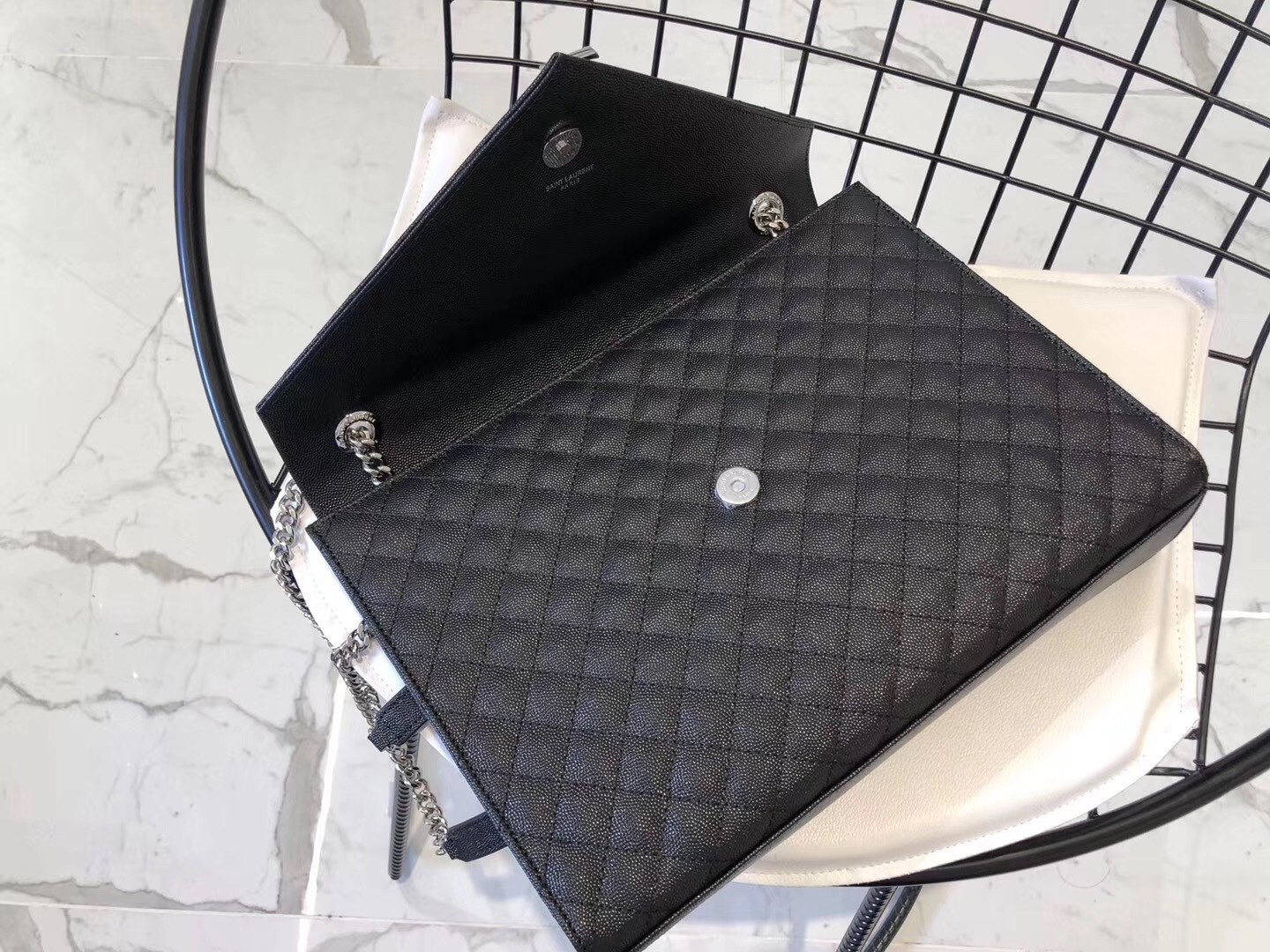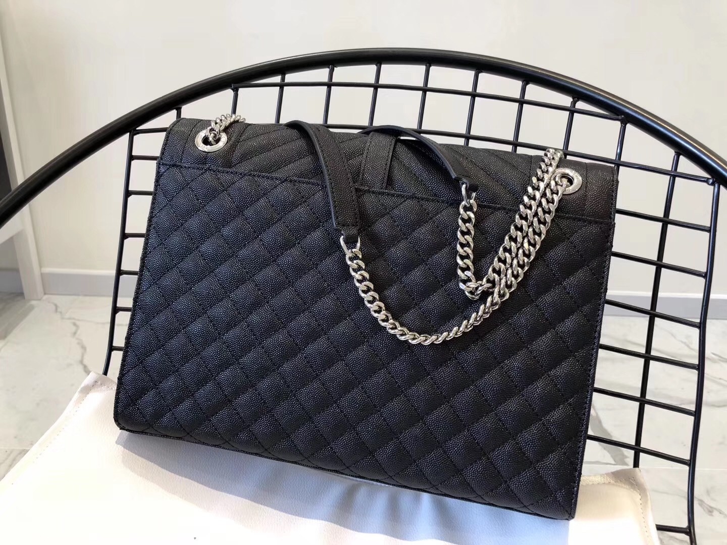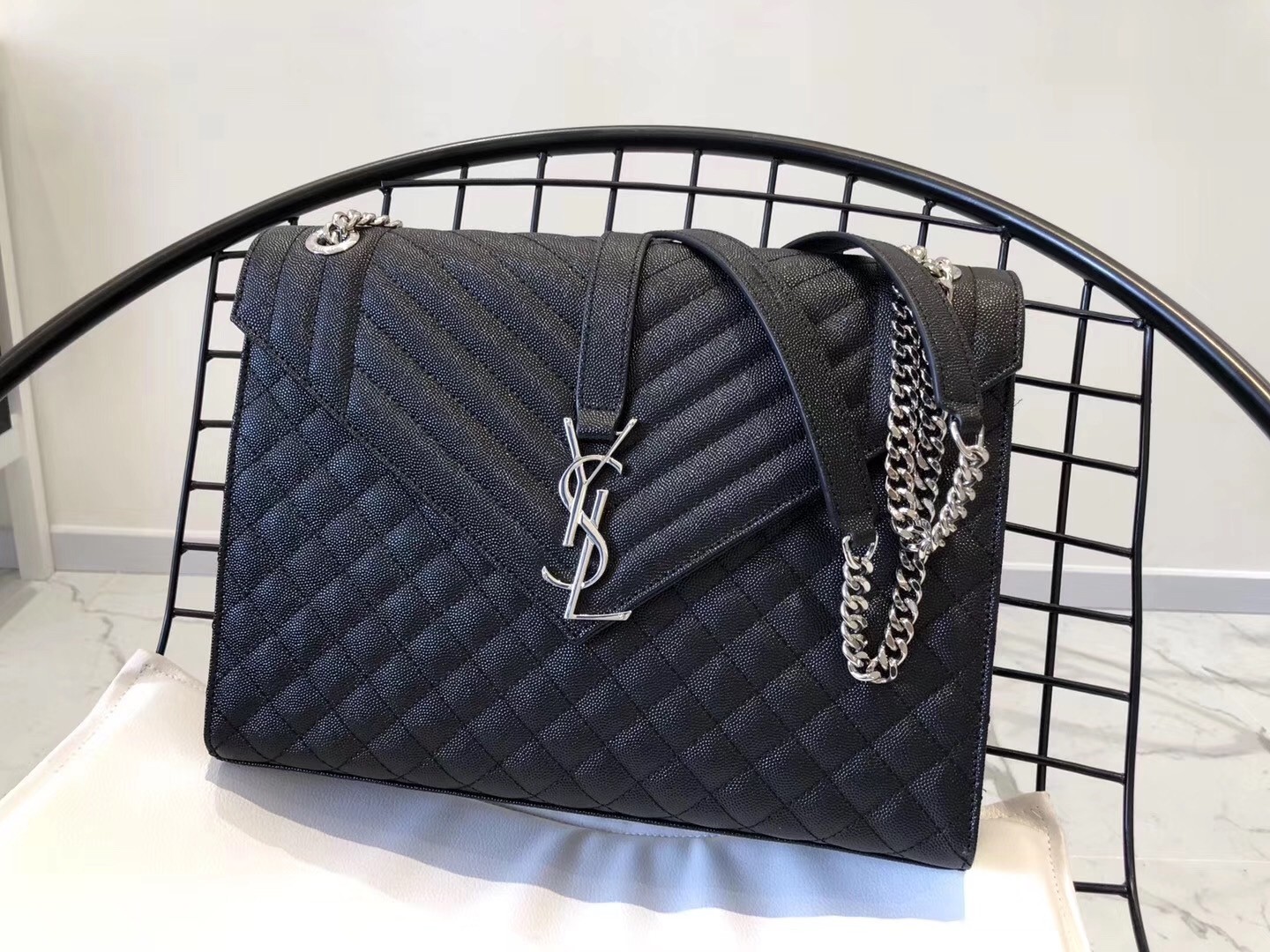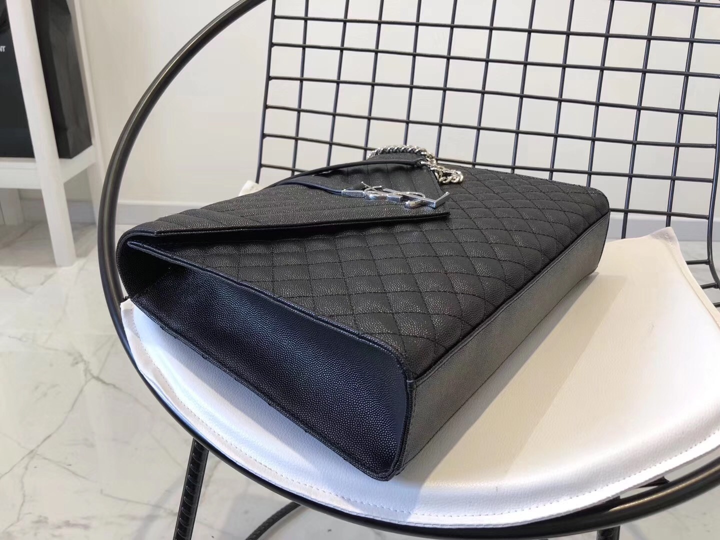If there was ever a bag that truly embodied classic Parisian chic, it might just be this Saint Laurent Envelope shoulder bag. The sleek silhouette is instantly recognisable thanks to the coveted YSL monogram that sits on the front flap, while iconic matelass?? stitching highlights the elegant shapes of the design. The large size is perfect for all your daily needs, while the chain strap can be worn long or short as part of your street-style edit.
