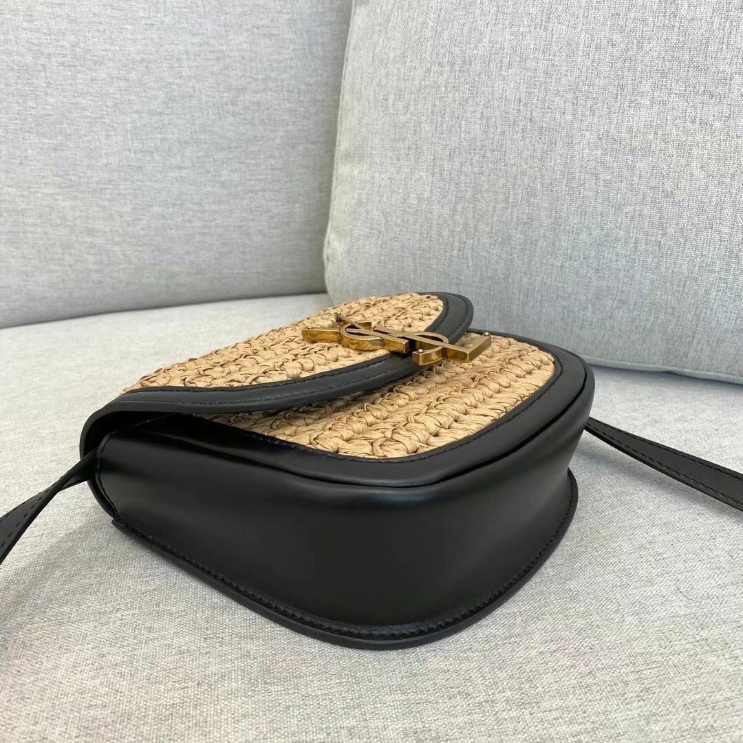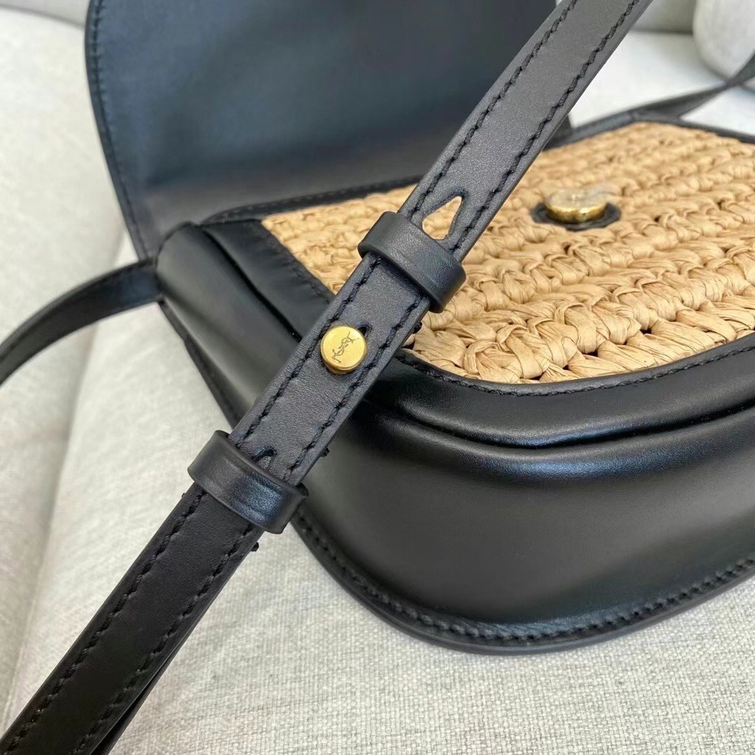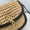Raffia accessories are always a worthwhile investment, since you’ll reach for them every summer. Saint Laurent’s sleek saddle-shaped ‘Kaia’ bag has been crafted in Italy, woven from natural straw and traced with supple leather. The Maison’s emblematic interlocking logo punctuates the center.