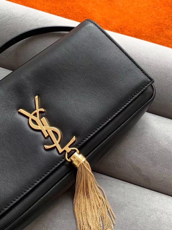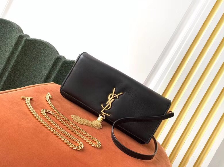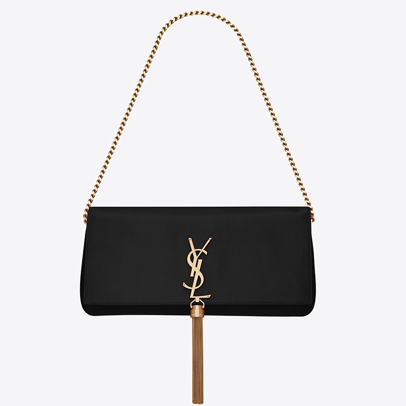The baguette silhouette of Saint Laurent’s Kate 99 shoulder bag is a mainstay in the Parisian brand’s collections – this version has a slim, ’90s-style shape. Made from lambskin, it has a delicate chain strap and is embellished with the house’s tassel-tipped monogram plaque. There’s a zipped pocket inside, which will keep your apartment key and lipstick from floating around.
