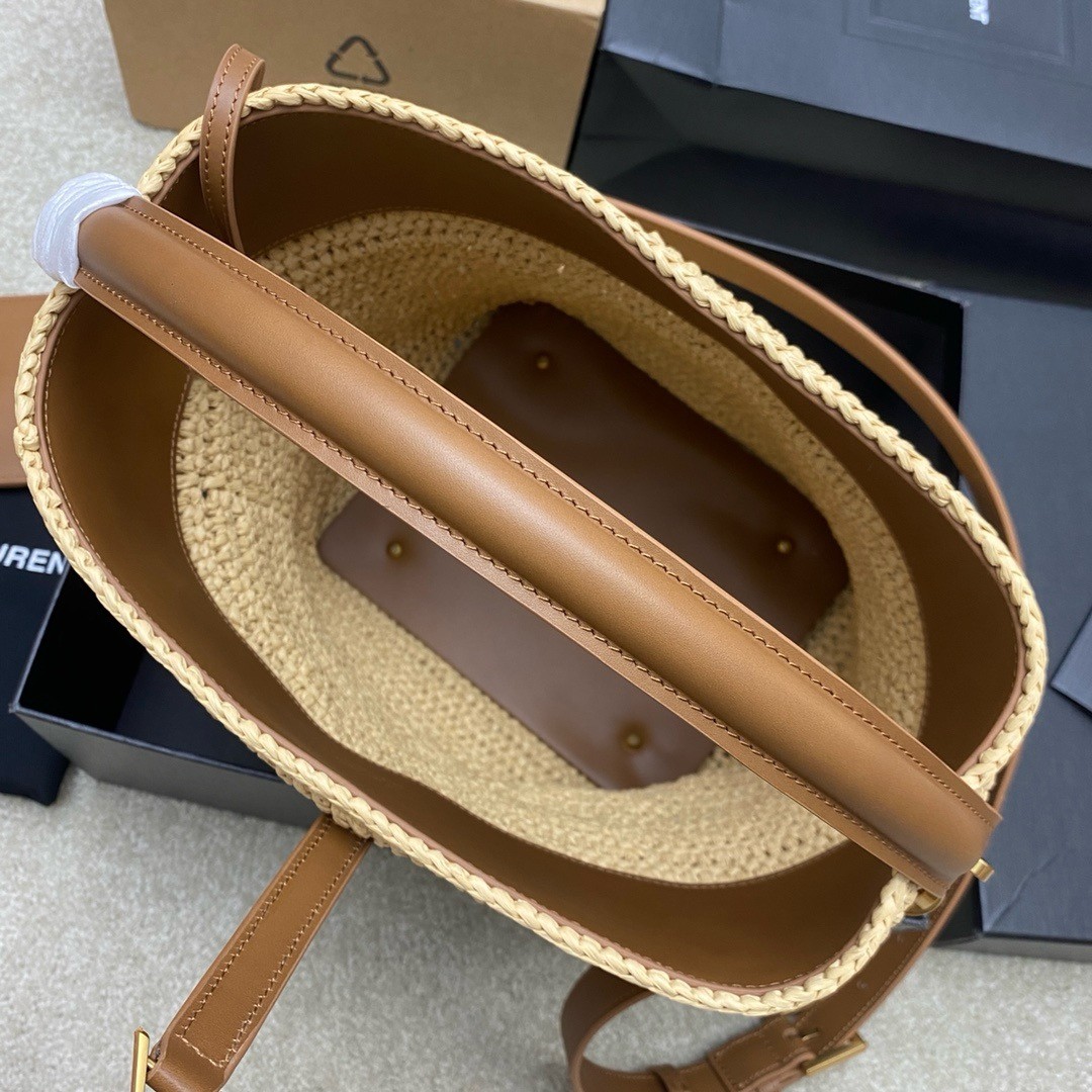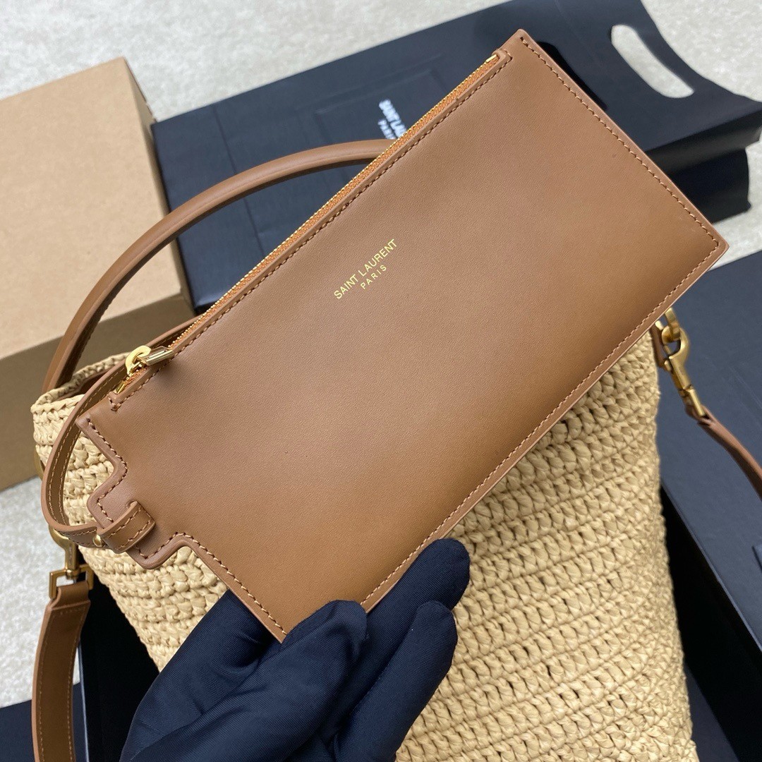 Saint Laurent Le 37 Bucket Bag in Natural Woven Raffia