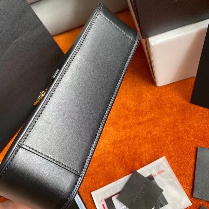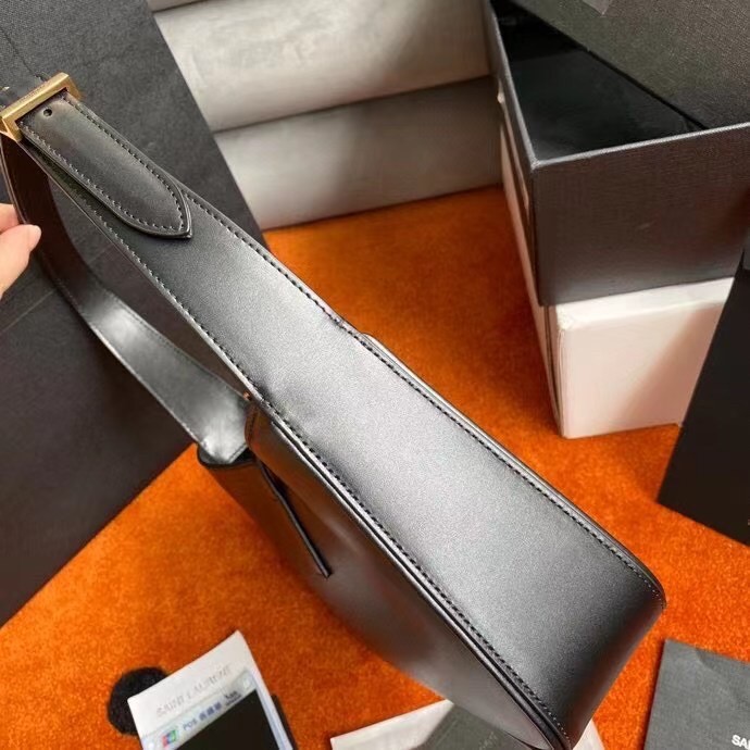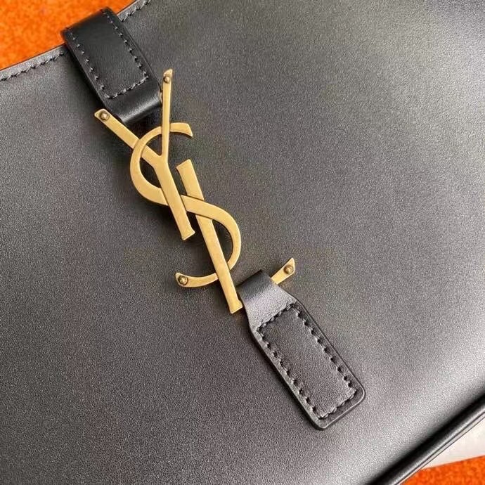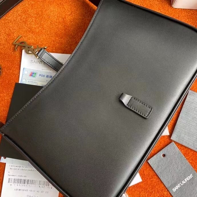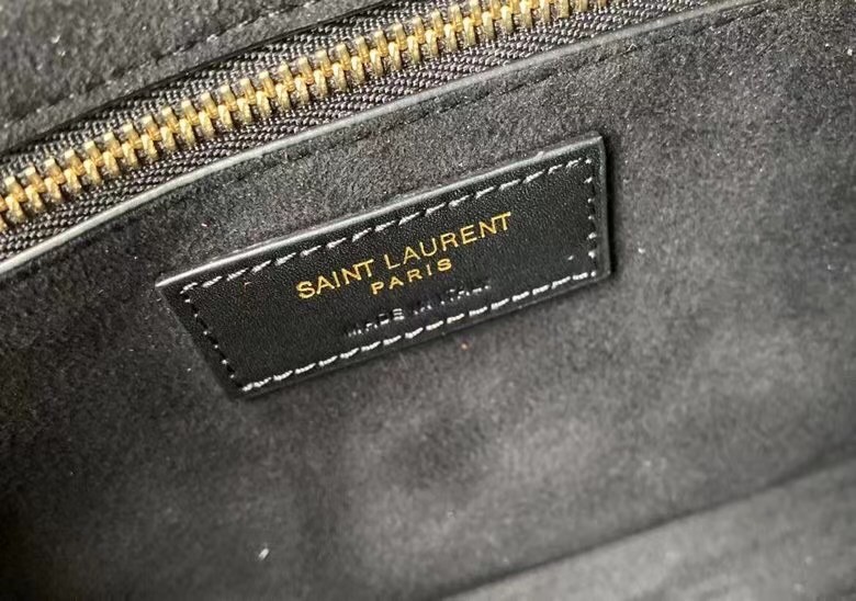 – Adjustable strap and tab closure with metal YSL hook
