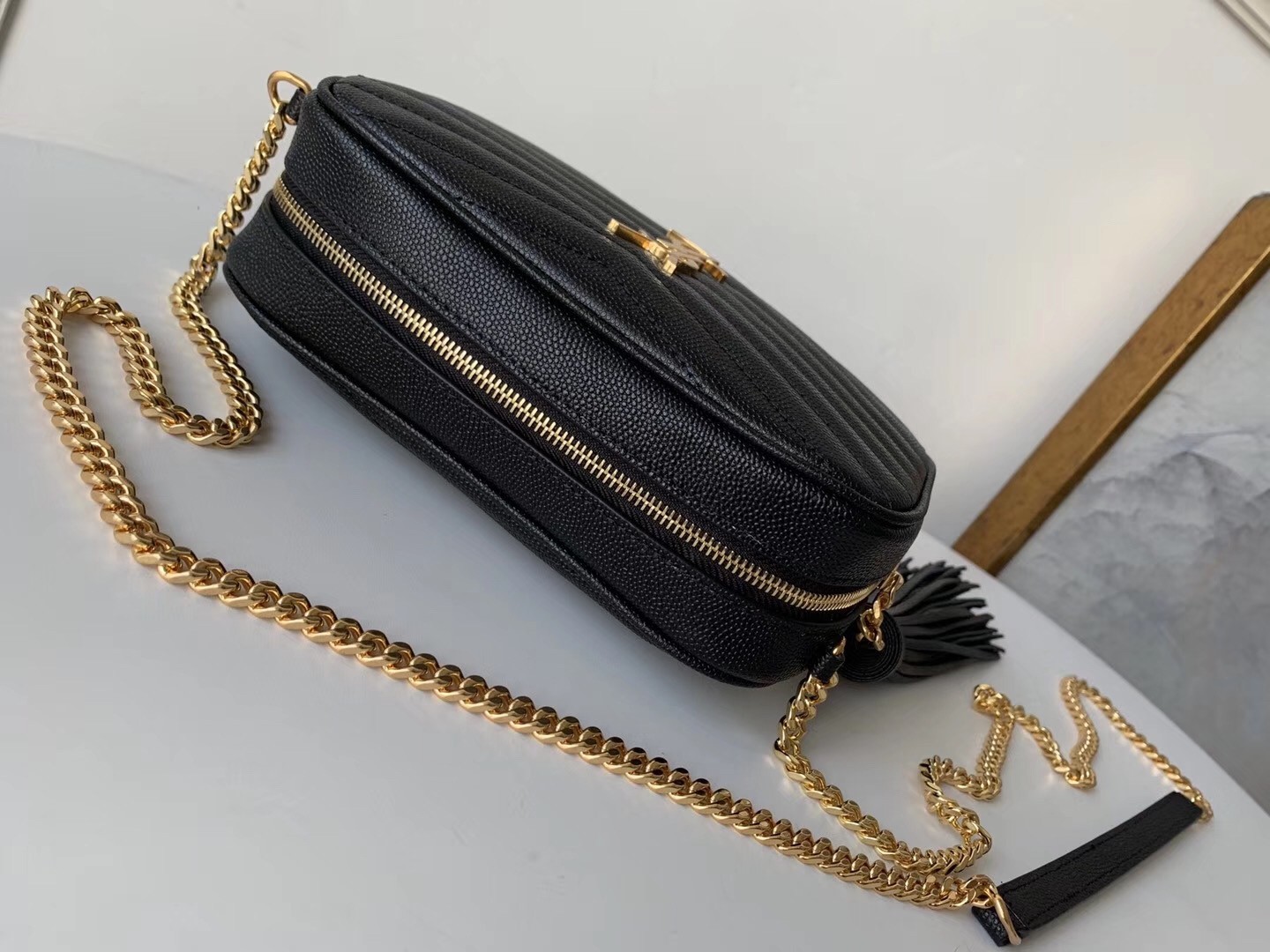 – Tassel with a Saint Laurent-engraved ID plate