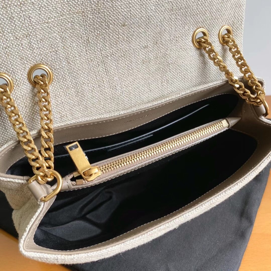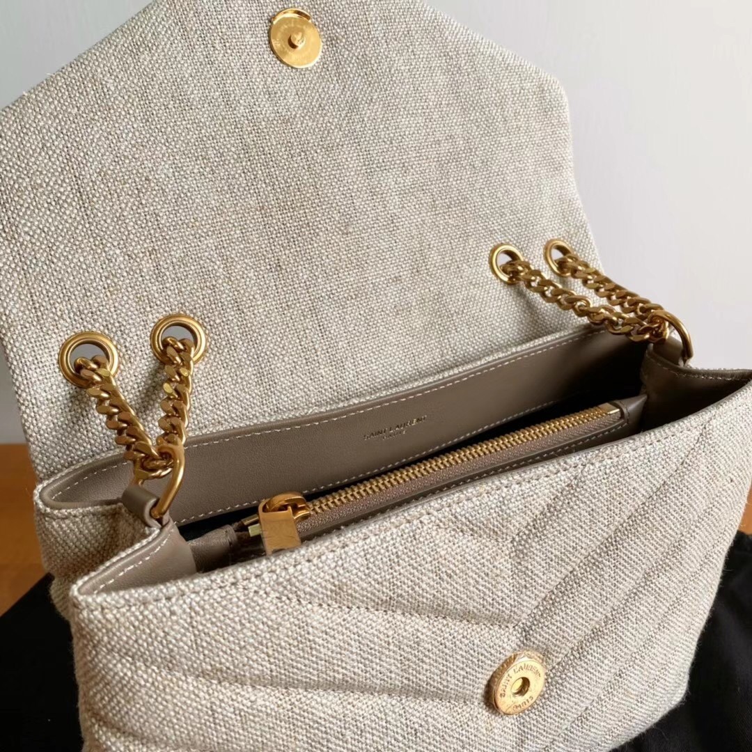Designed in tribute to one of Saint Laurent’s muses, the beige Loulou Small shoulder bag has gone on to become a style icon itself. This iteration is made from soft linen and is filled with specially designed airy foam that creates signature quilting. This design is finished with metallic hardware, including the iconic YSL monogram.