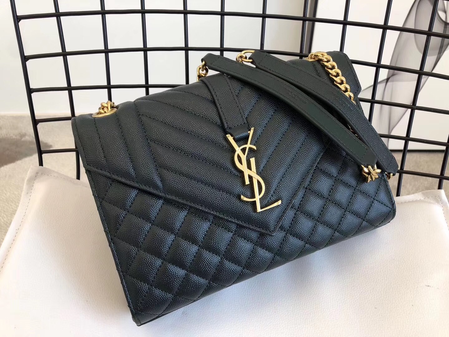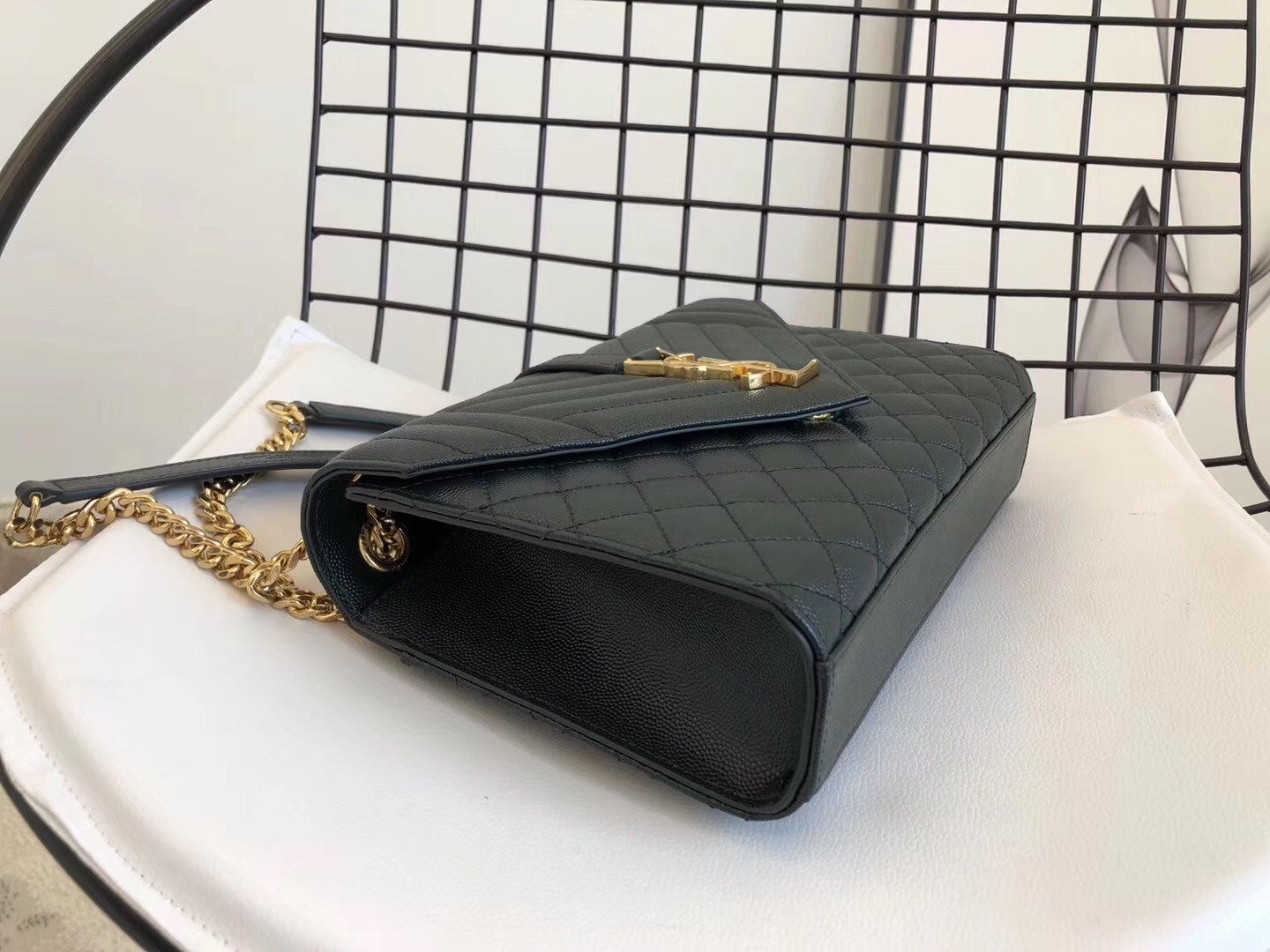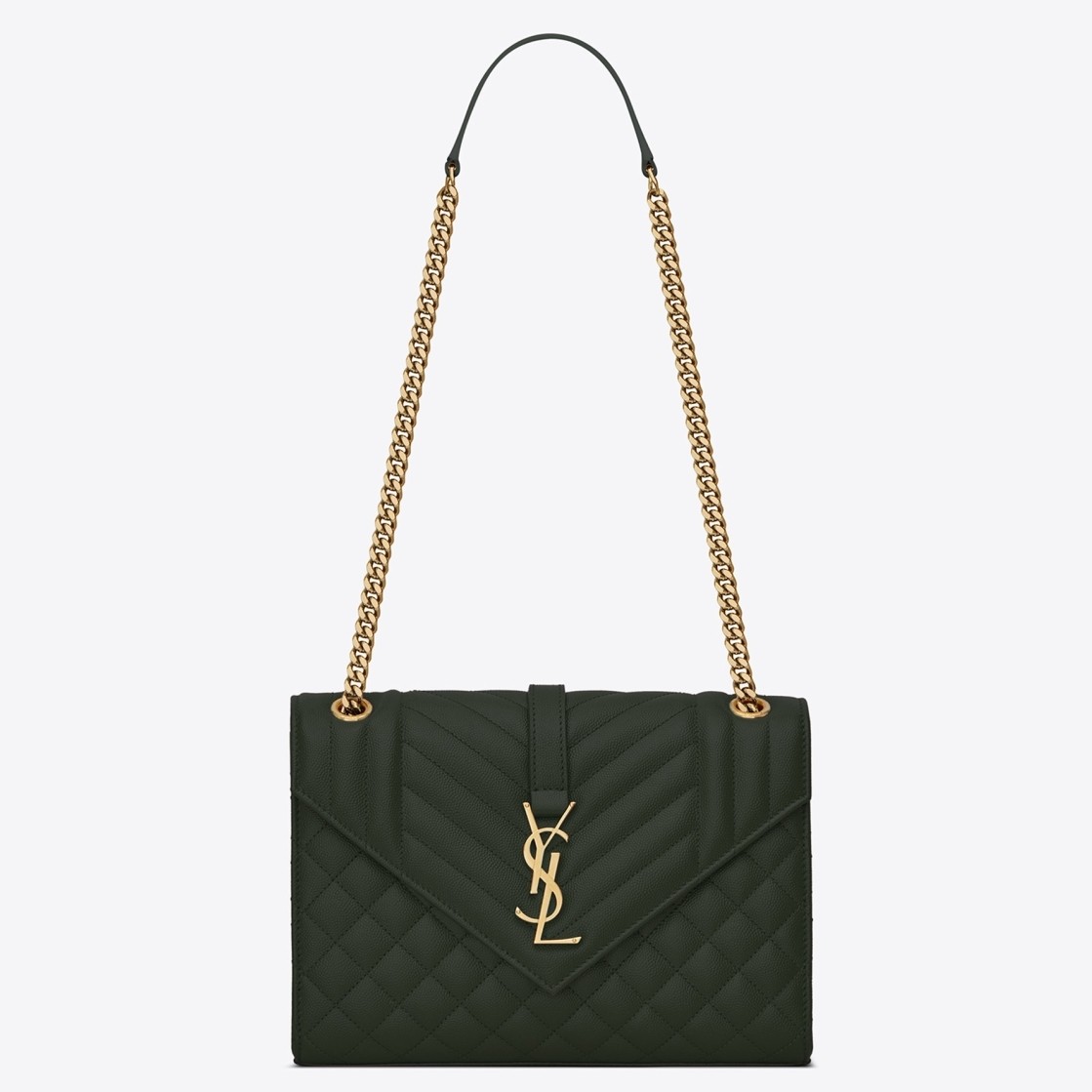 Saint Laurent Medium Envelope Bag In Dark Green Grained Leather