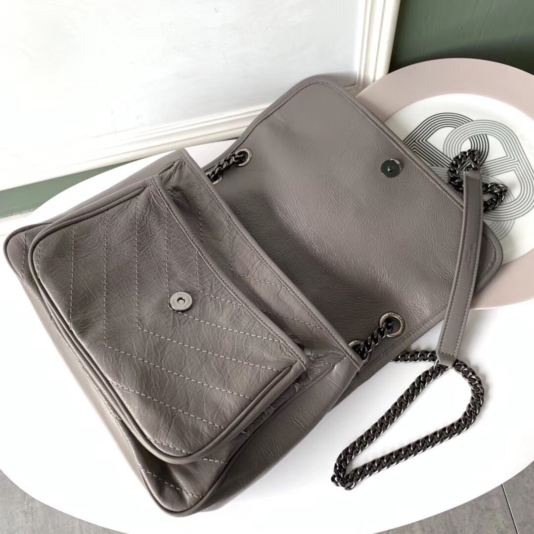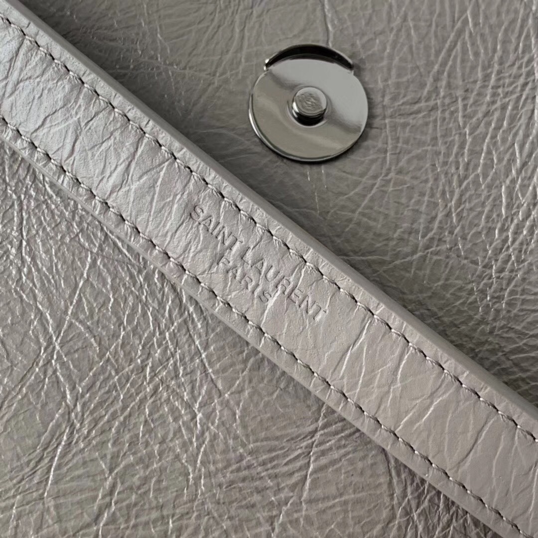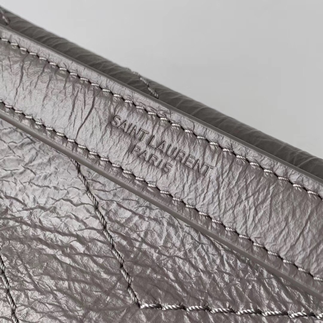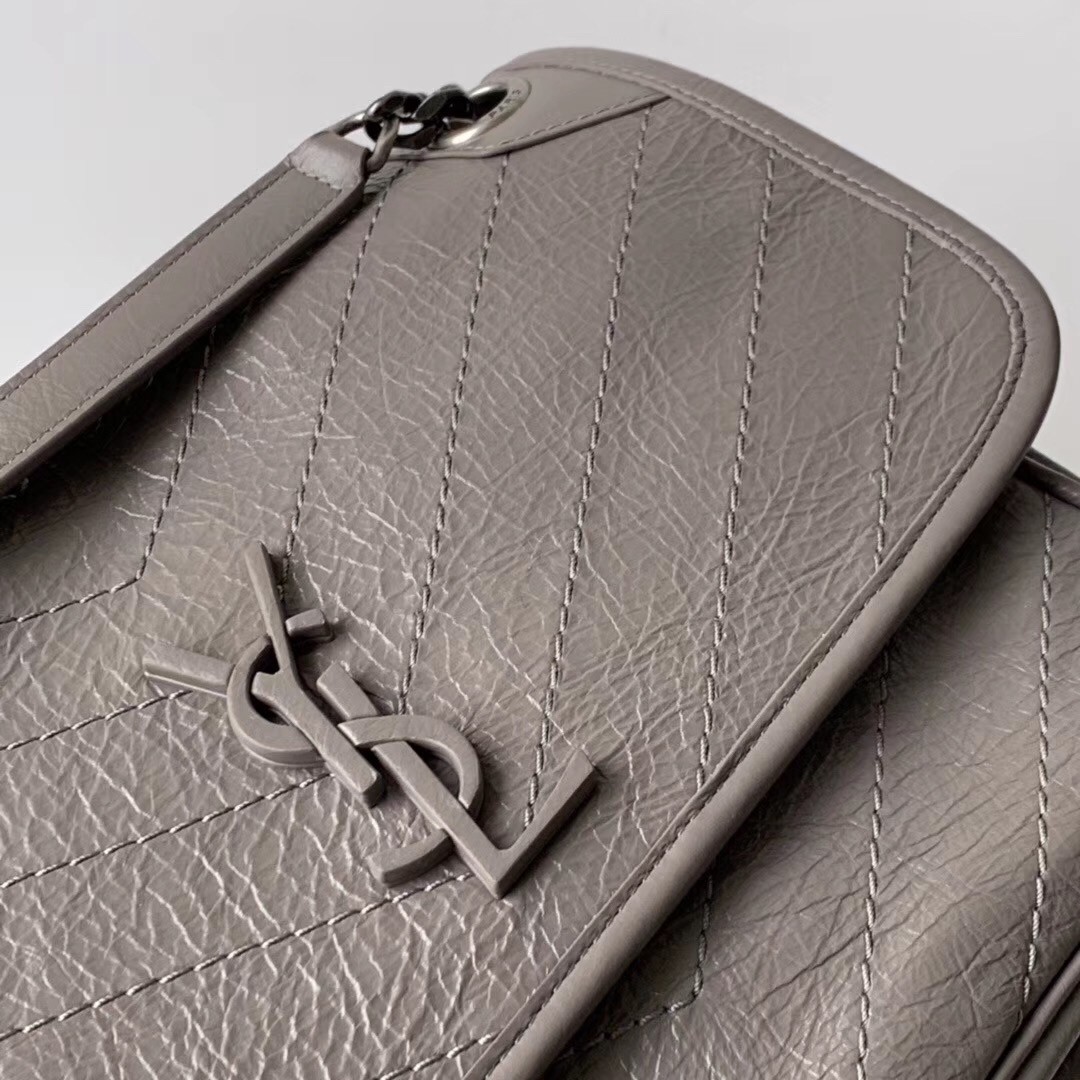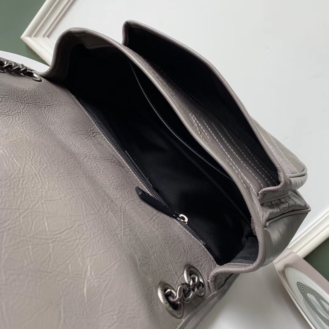 Saint Laurent Medium Niki Bag In Grey Crinkled Leather