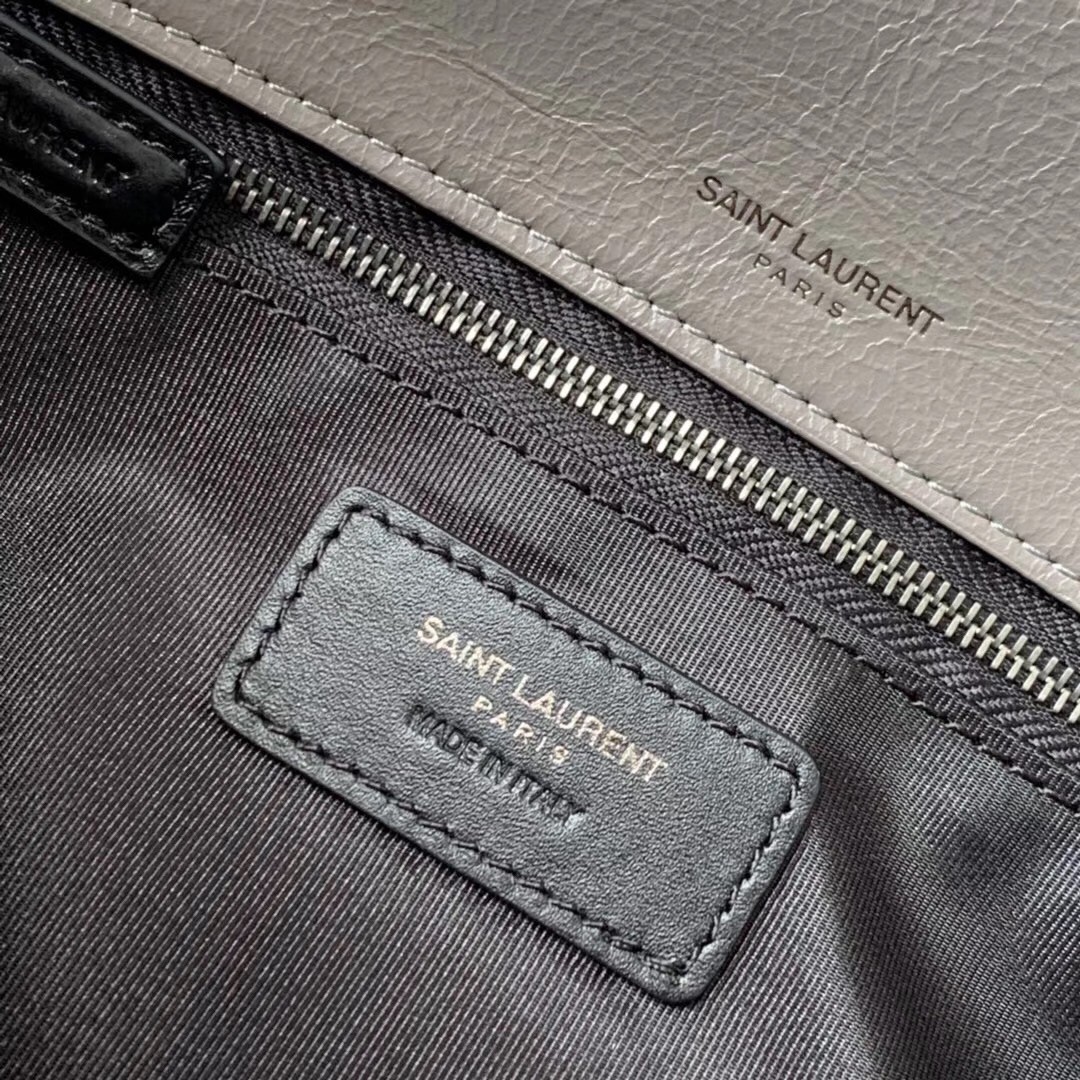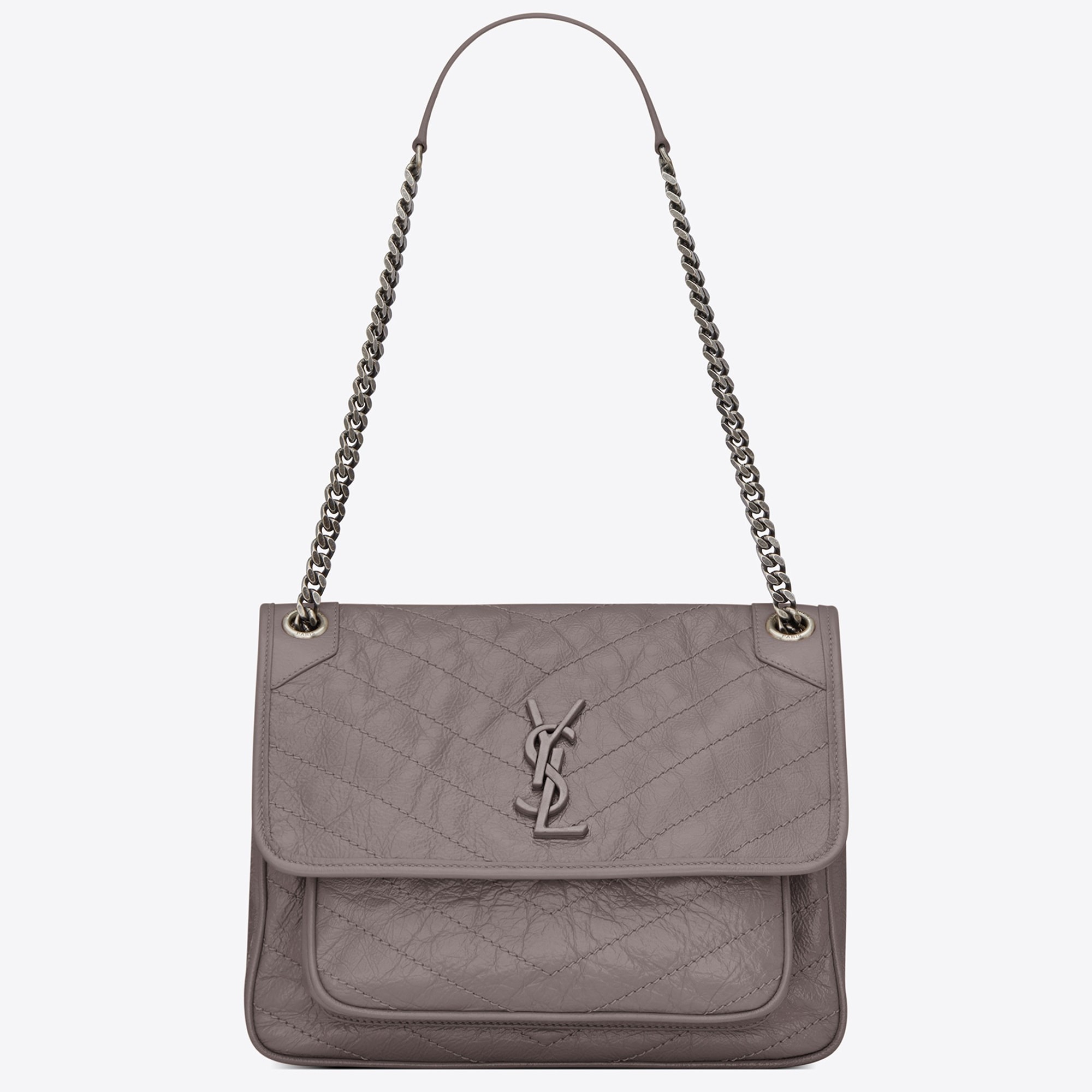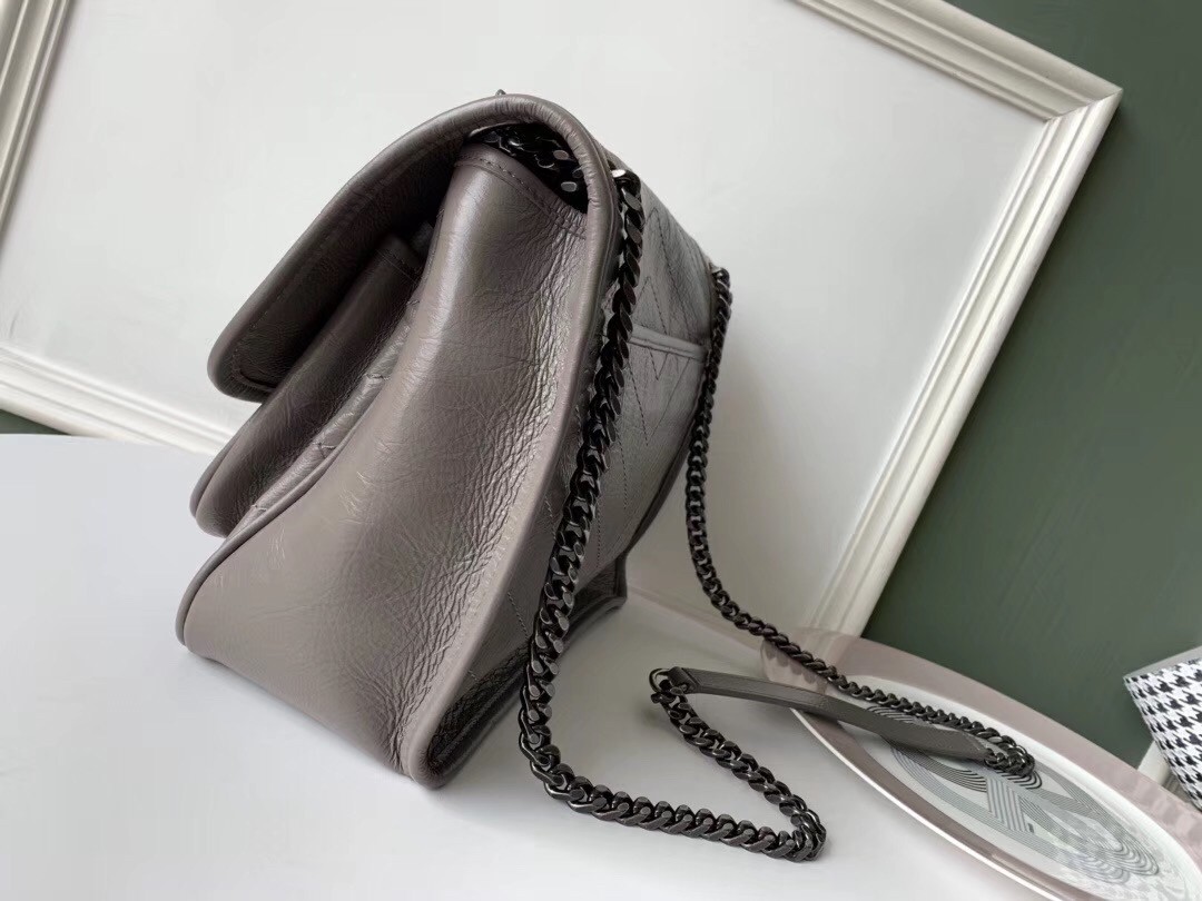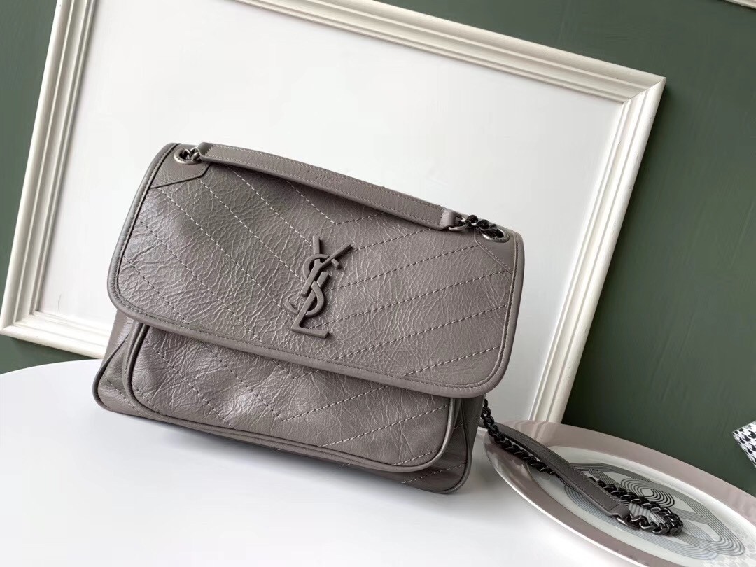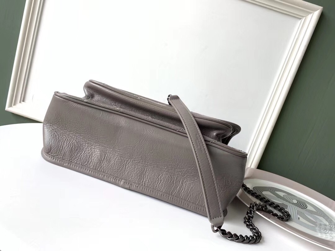Saint Laurent Medium Niki Bag In Grey Crinkled Leather