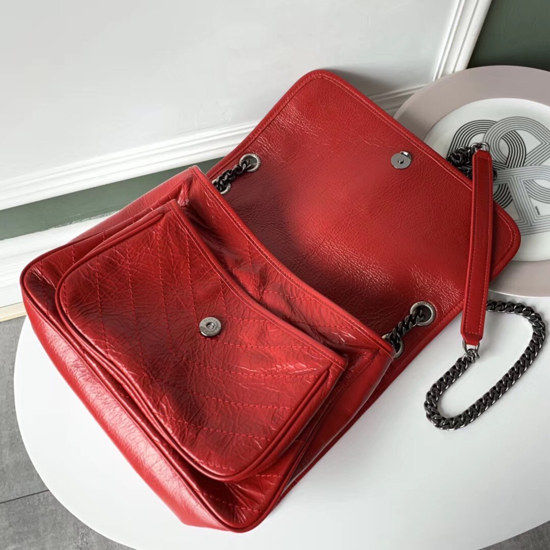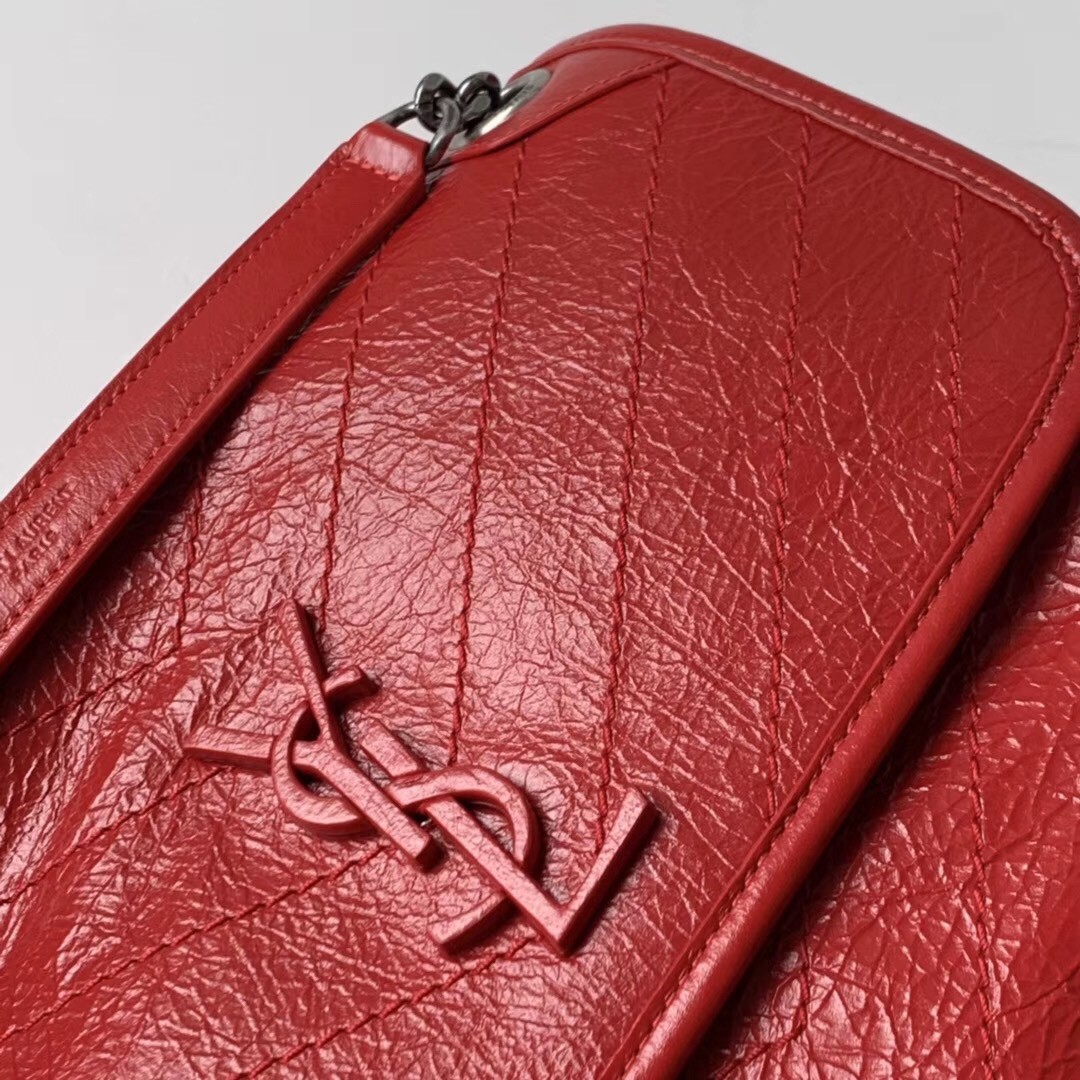 A softly structured addition to Saint Laurent’s polished Parisian line-up, the Niki bag is a modern classic. Highlighted with the iconic YSL monogram to the front flap, it is crafted in luxurious crinkled leather for a laid-back feel. Suspended from a chunky chain strap that can be worn long or short, it is fitted with spacious pockets both internally and externally, hosting your day-to-day essentials in sophisticated style.