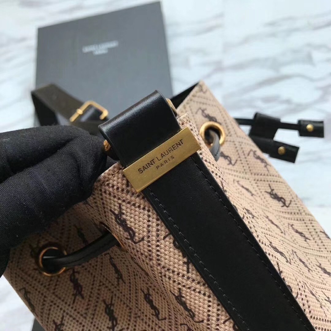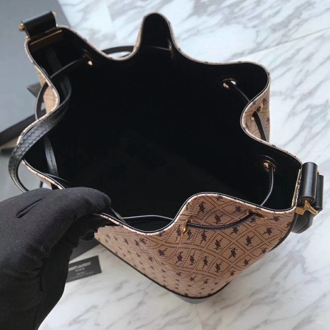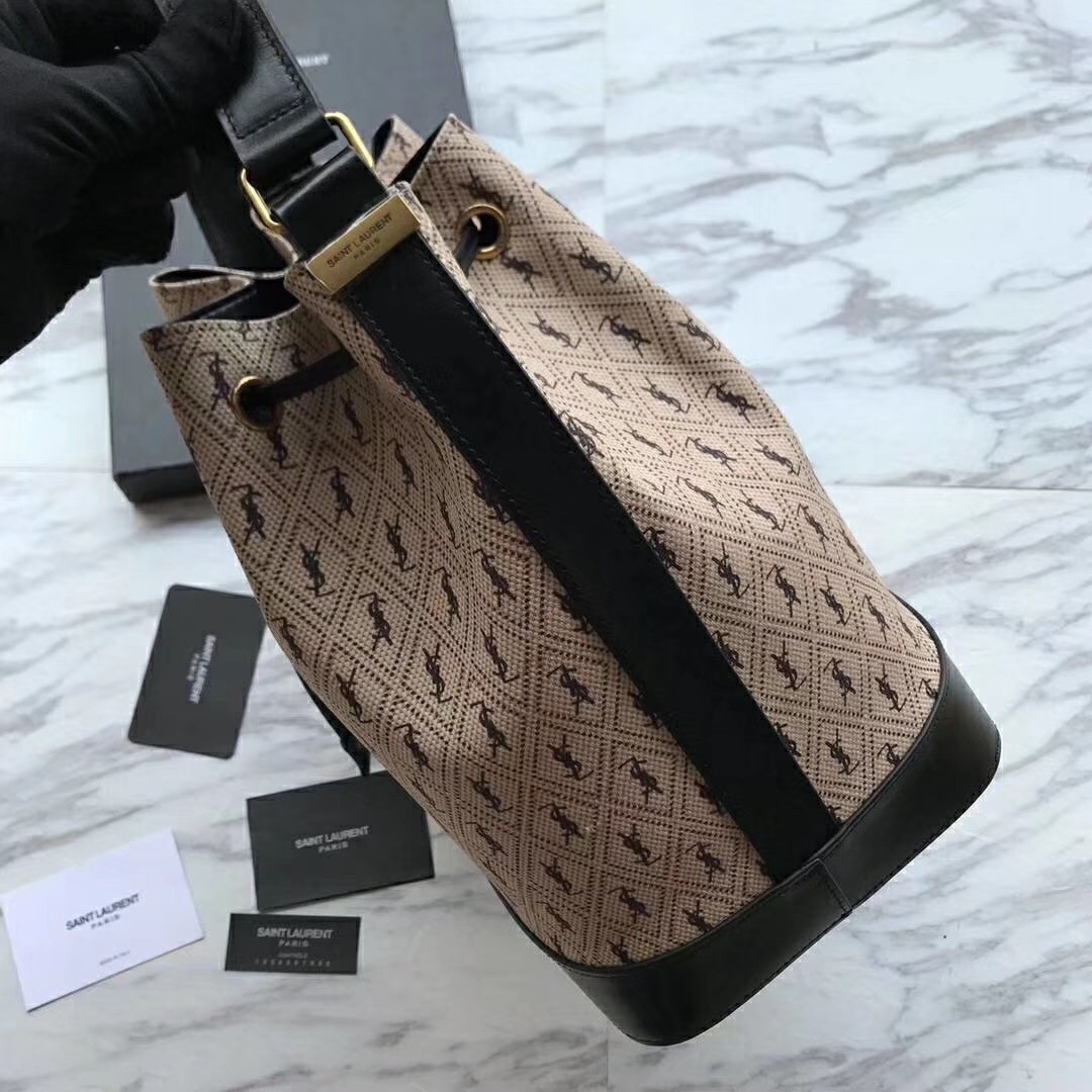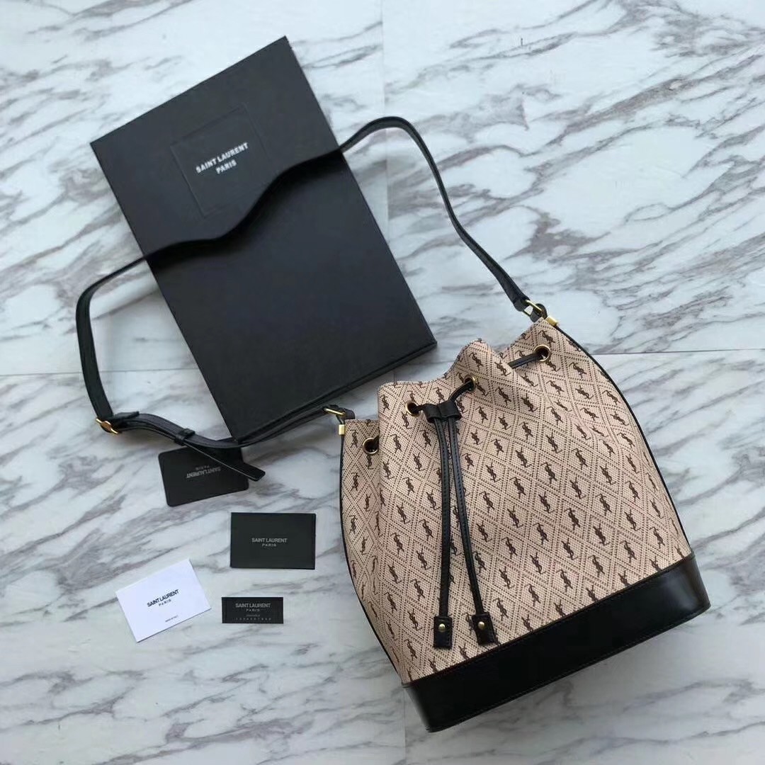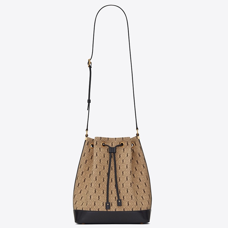 Saint Laurent has always used its logo pretty sparingly ?? sure, you’ll often find the YSL moniker pressed on top its bags, but the label takes it in a slightly different direction with this bucket bag. Closing shut with a drawstring fastening, it’s covered in a monogram print, which runs all over its canvas body, only leaving its leather trims and draping shoulder strap blank.