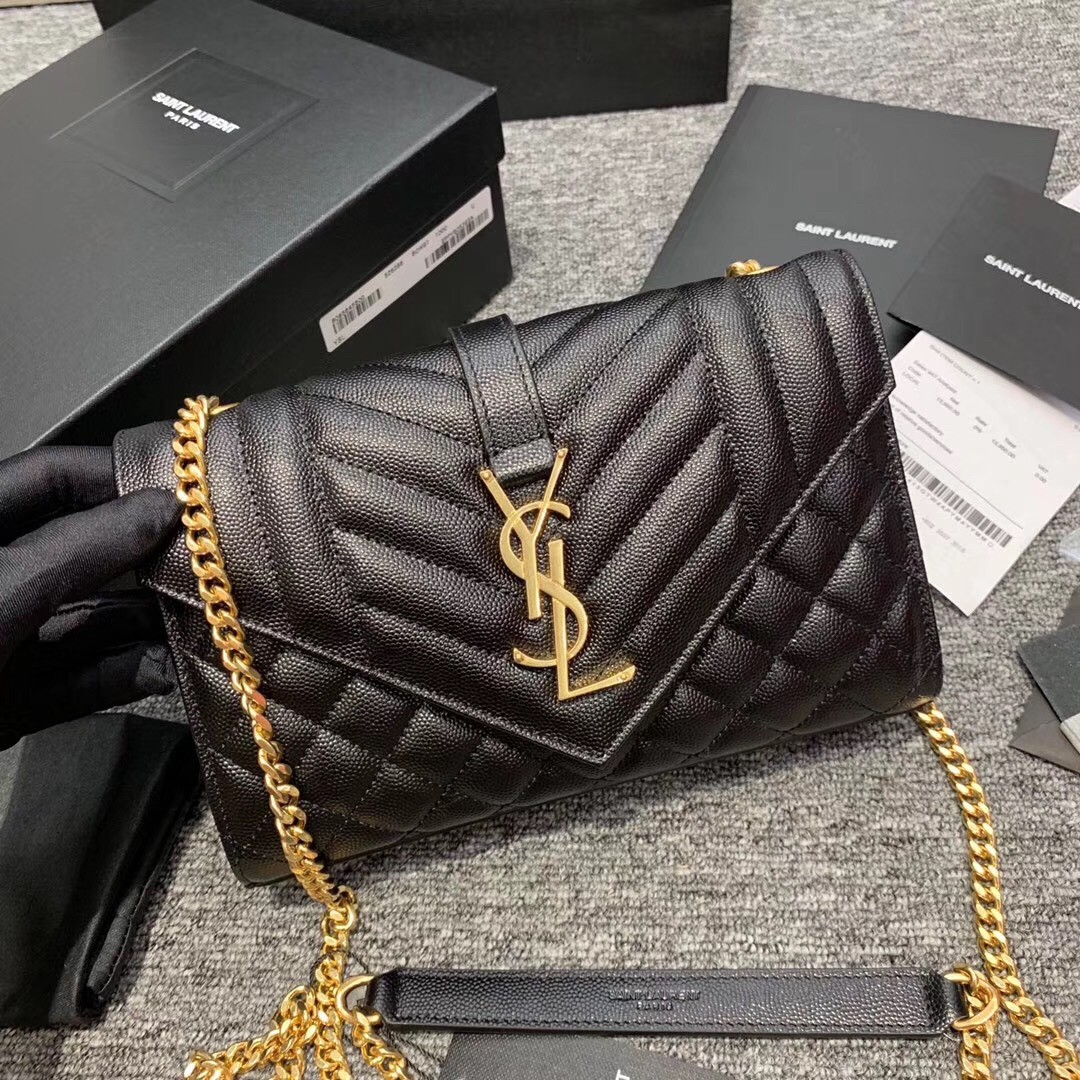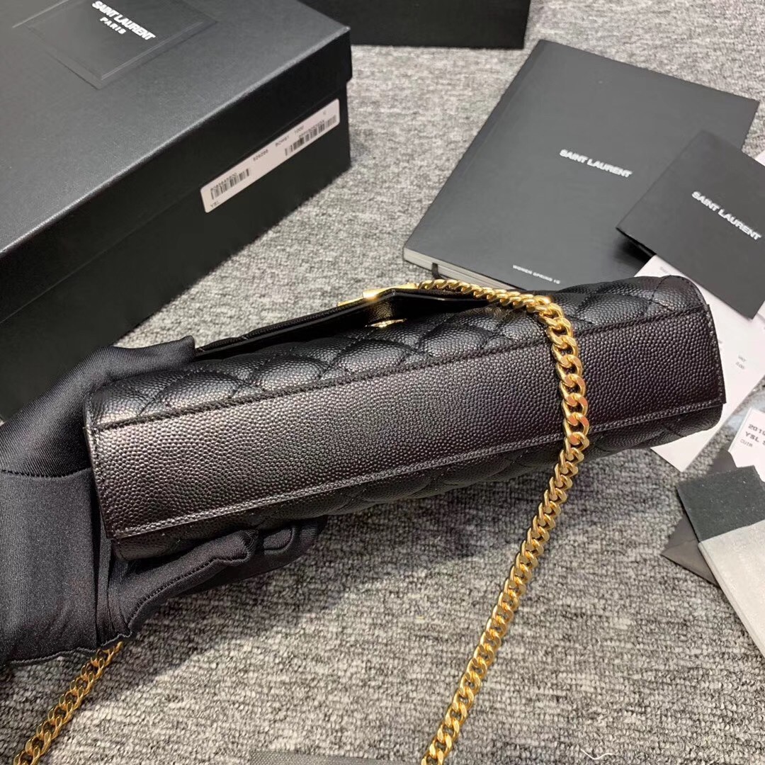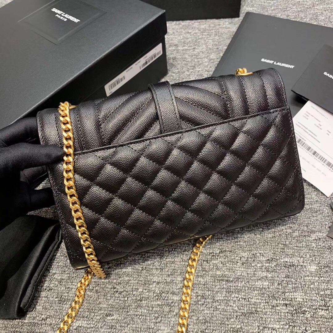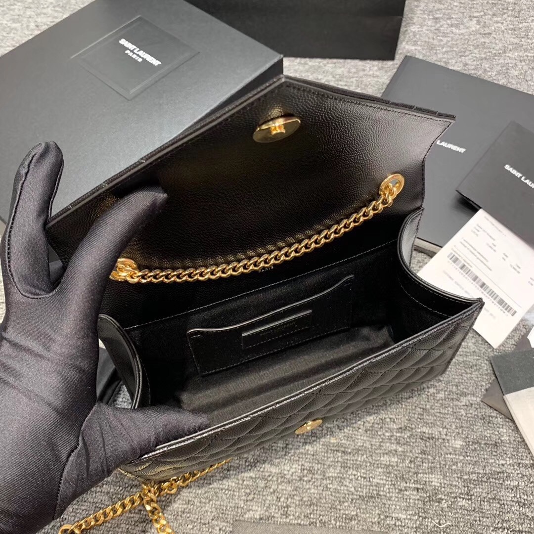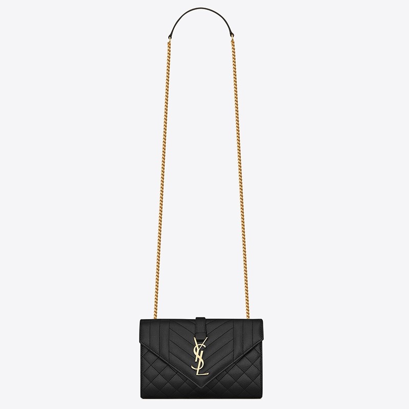 Saint Laurent Small Envelope Bag In Black Grained Leather