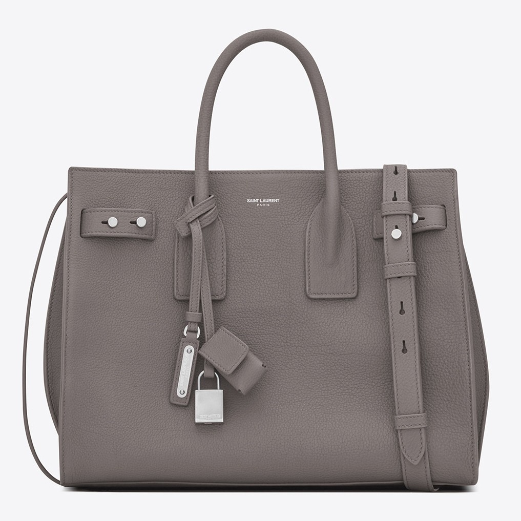 Reworked with a more supple silhouette, yet maintaining the unmistakable accordion construction and clean lines, Saint Laurent’s Sac de Jour Souple bag encapsulates the Parisian label’s distinctive fusion of timeless and modern designs. Soft grained leather is accented with minimal hardware and subtle lettering, while the detachable strap and removable zipped pouch provide practicality.