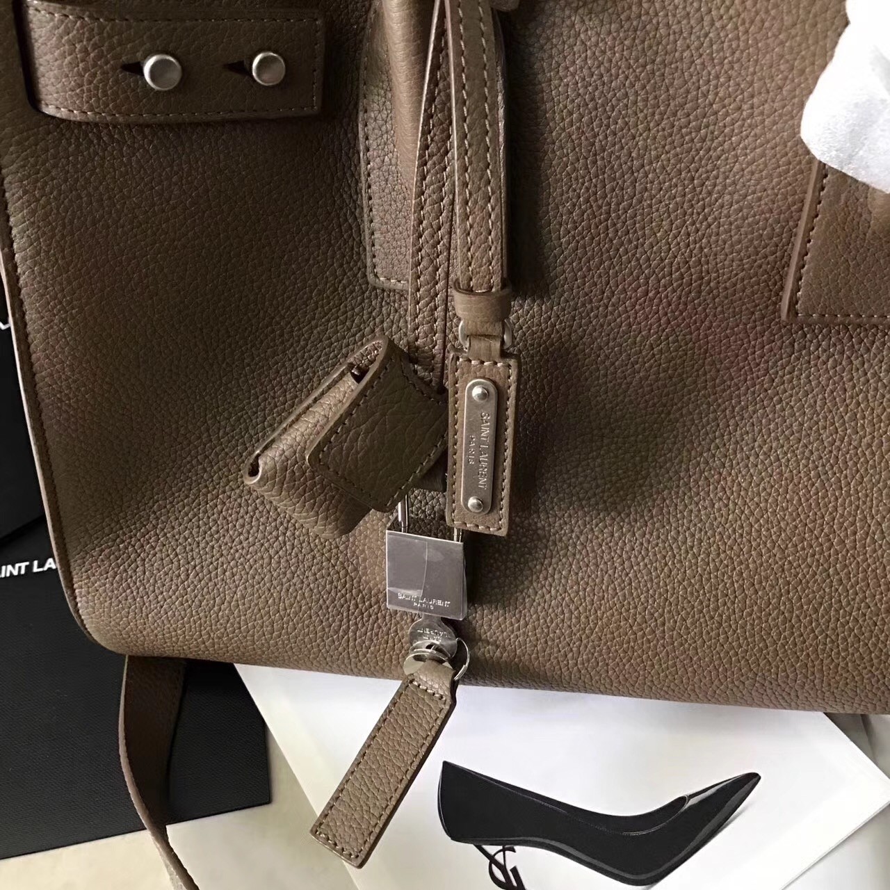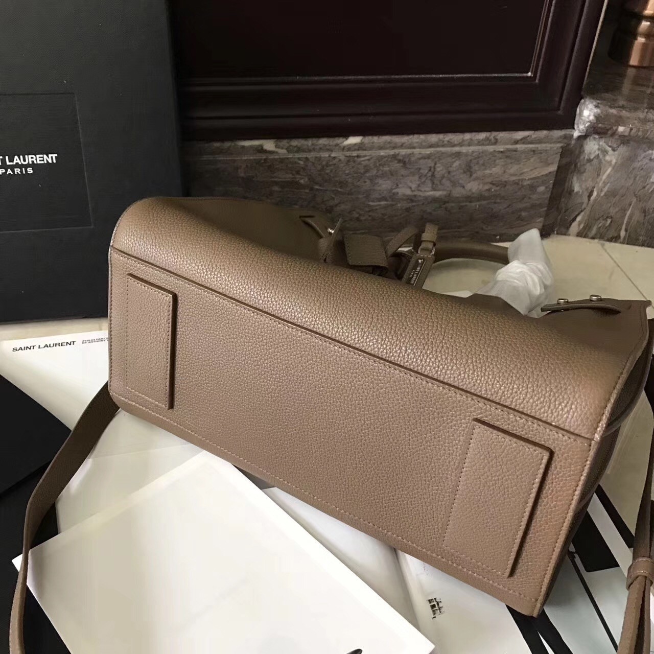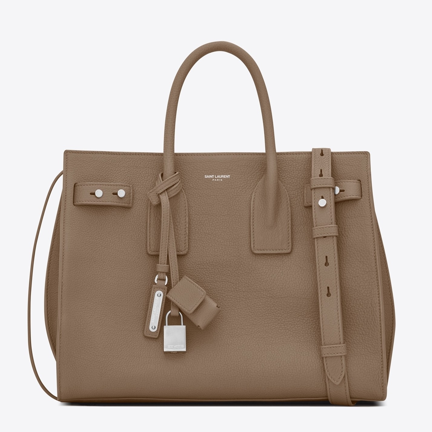 Reworked with a more supple silhouette, yet maintaining the unmistakable accordion construction and clean lines, Saint Laurent’s Sac de Jour Souple bag encapsulates the Parisian label’s distinctive fusion of timeless and modern designs. Soft grained leather is accented with minimal hardware and subtle lettering, while the detachable strap and removable zipped pouch provide practicality.